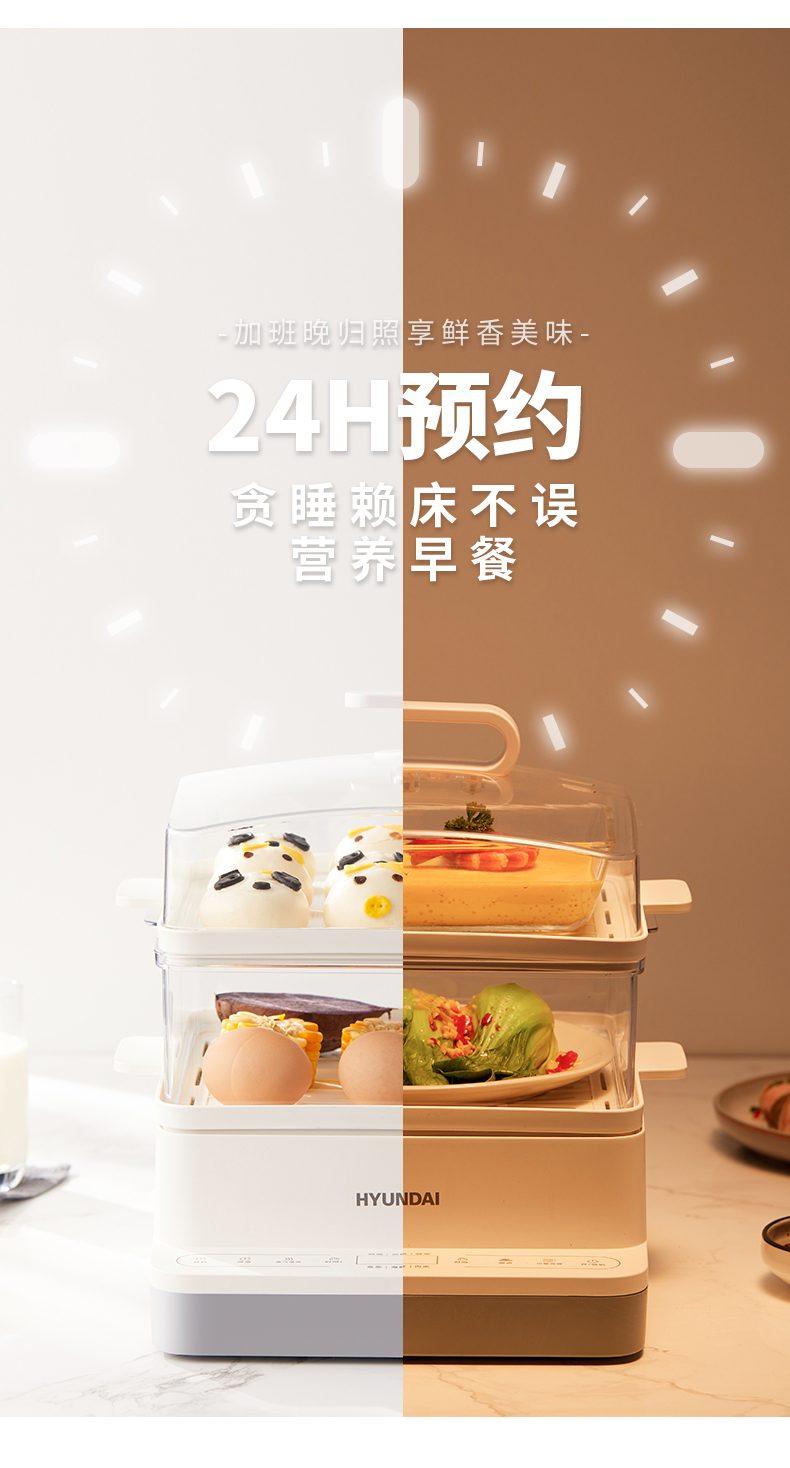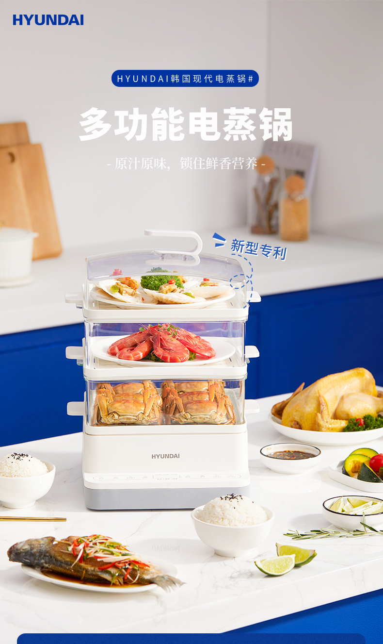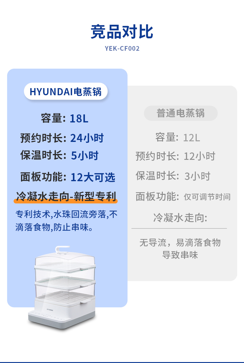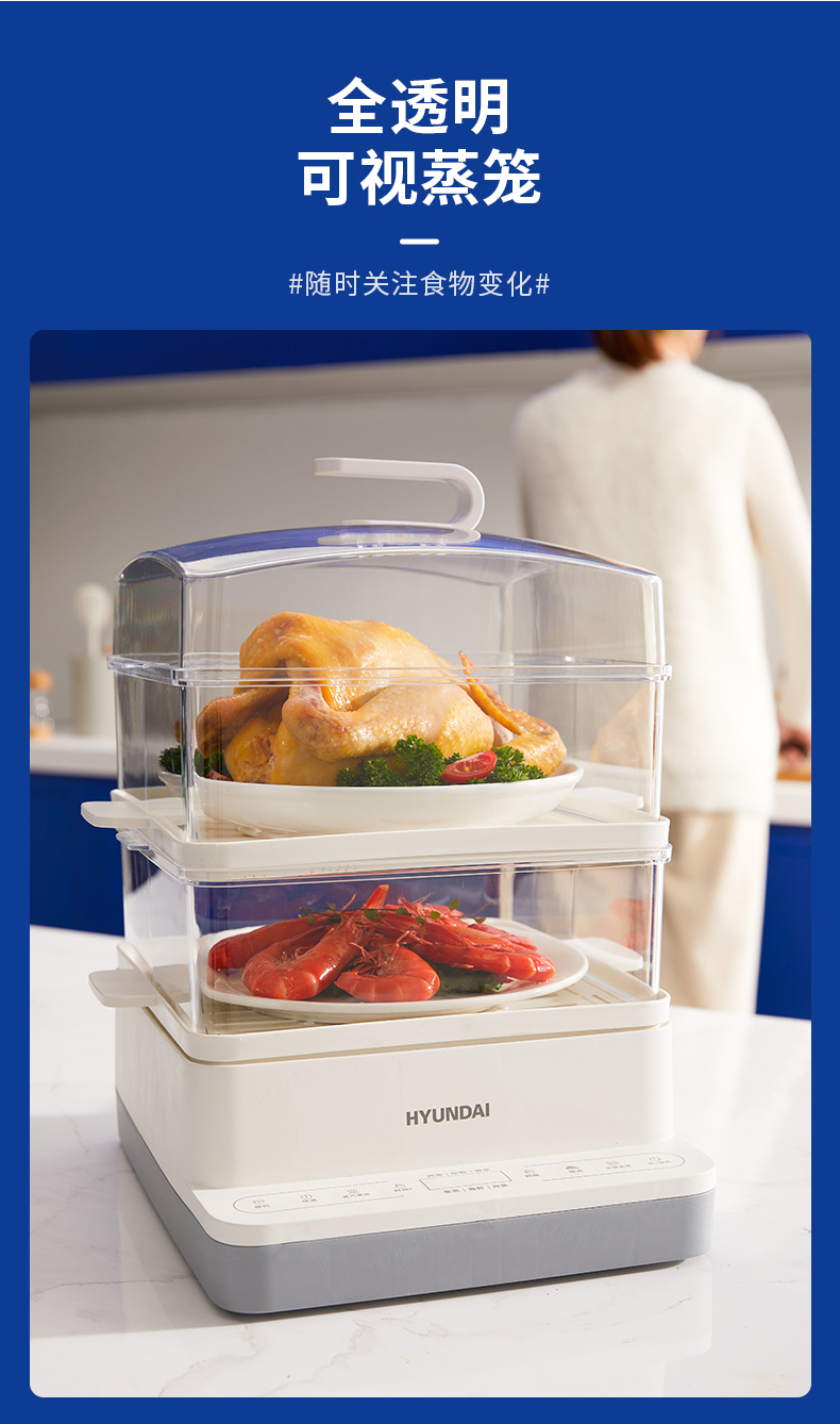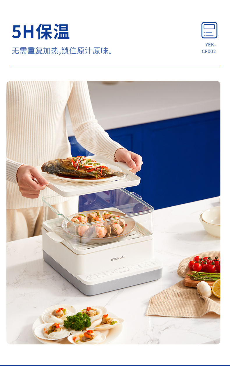 HYUNDAI韩国现代电煮锅电蒸锅分体式电蒸笼多用途预约保温18L容量