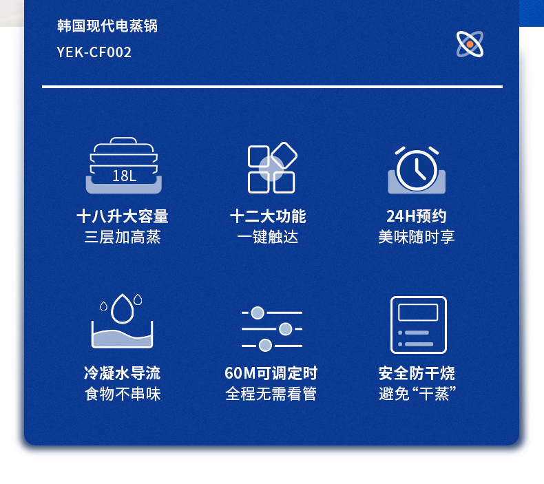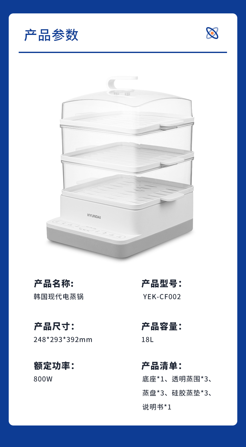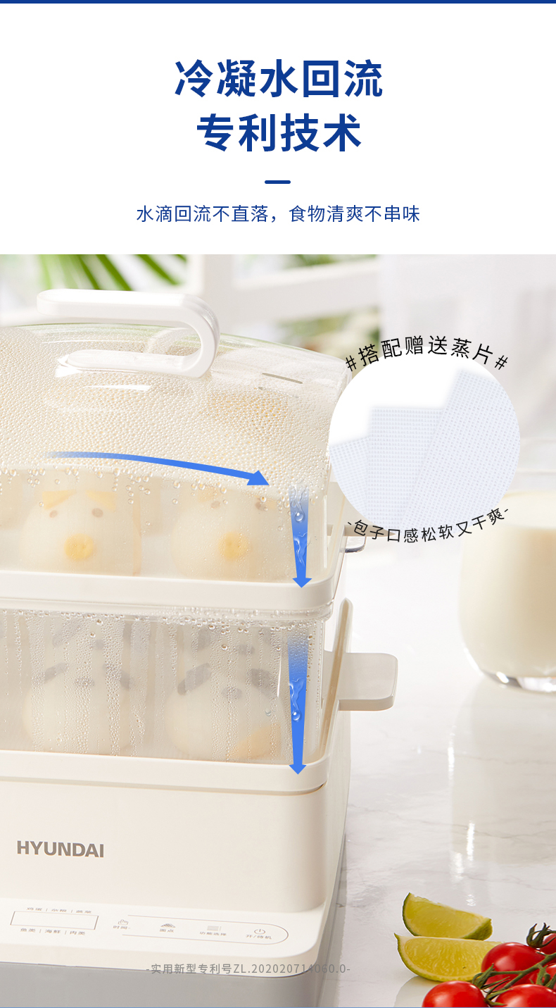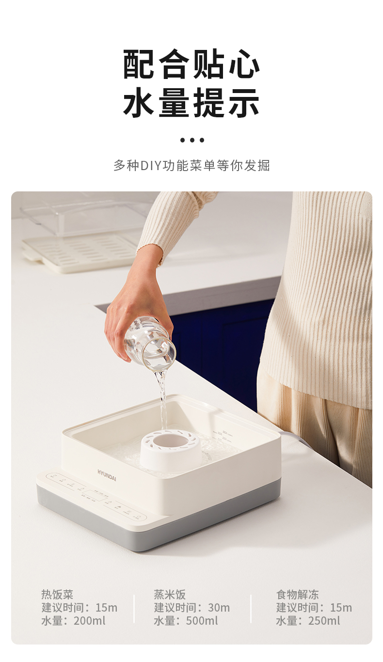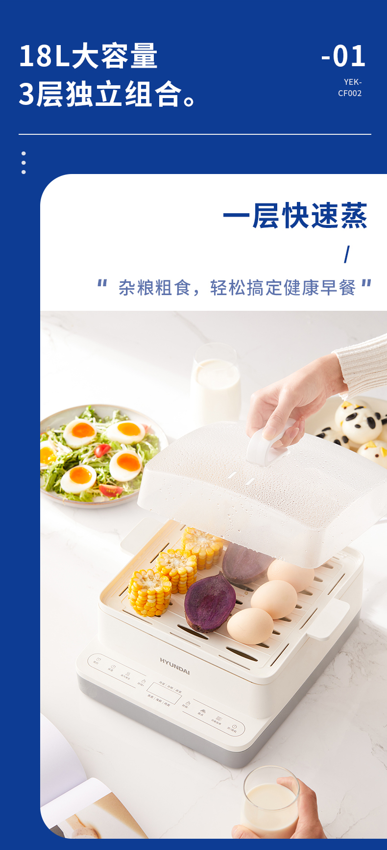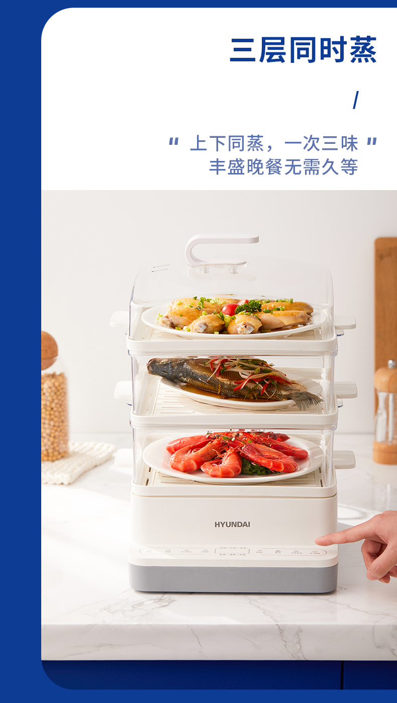 HYUNDAI韩国现代电煮锅电蒸锅分体式电蒸笼多用途预约保温18L容量