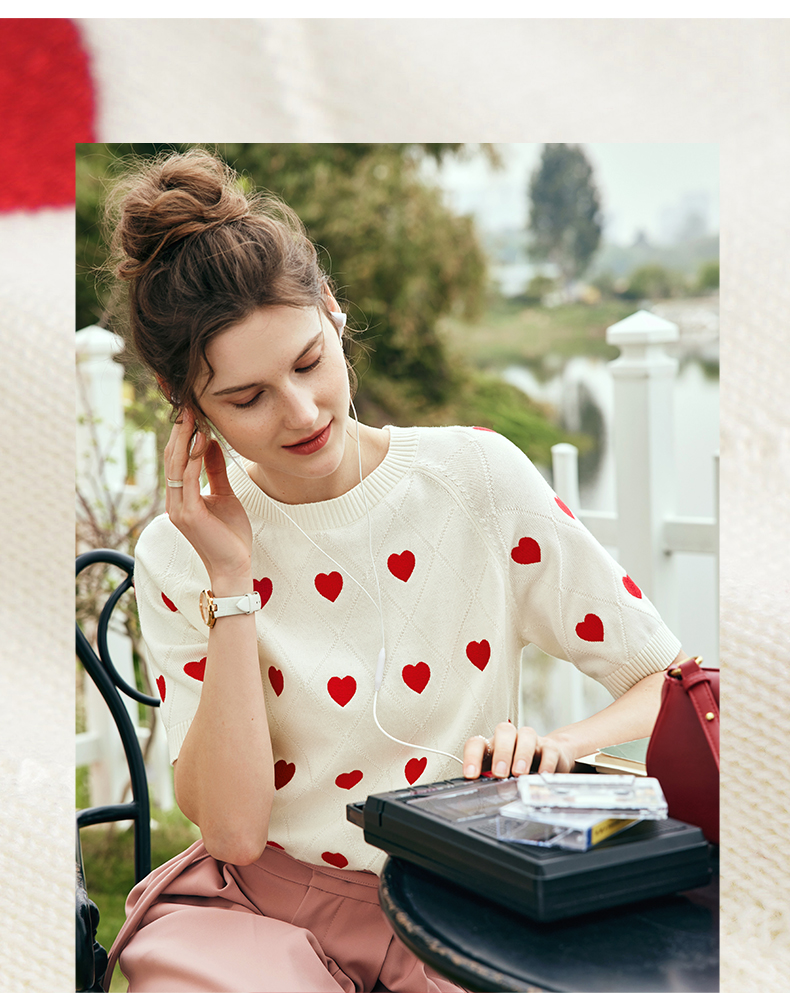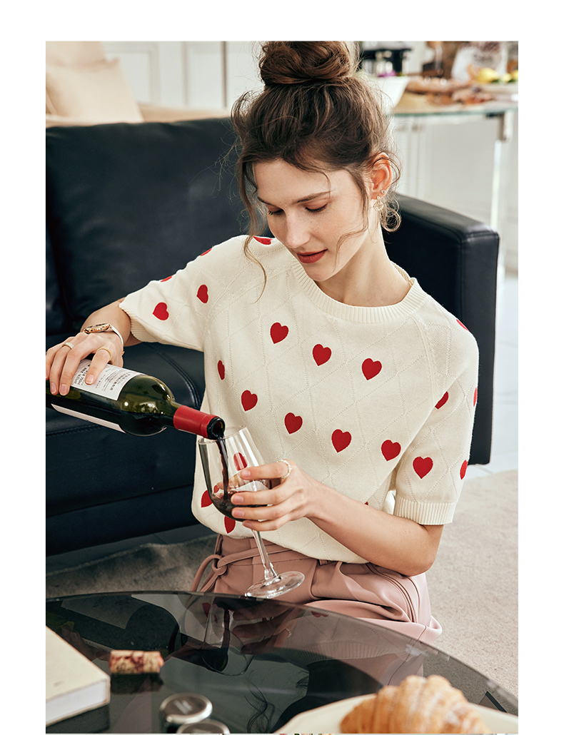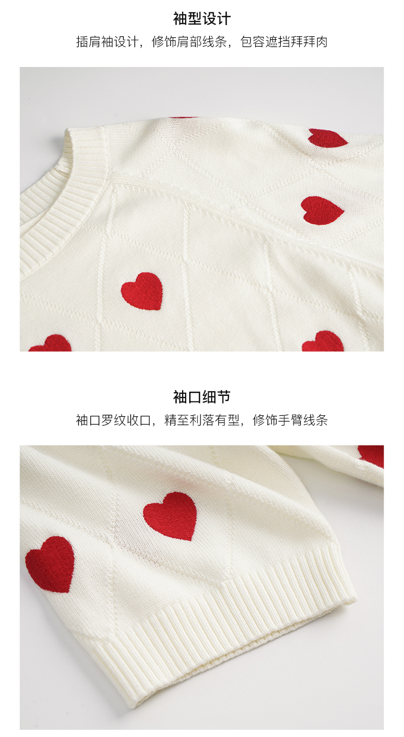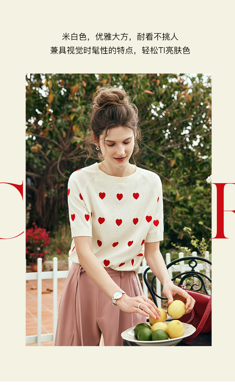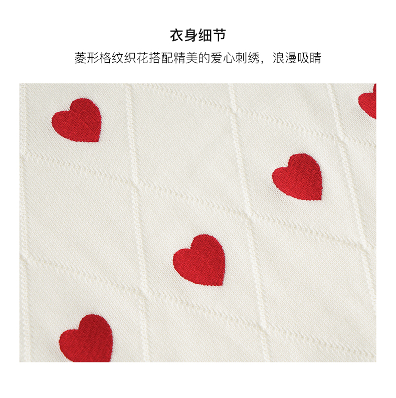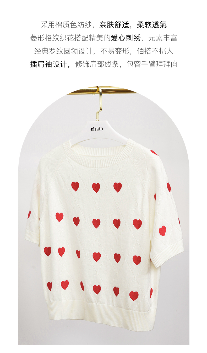 OLrain欧芮儿法式米白色菱格针织衫女夏季2023新款爱心刺绣套头衫