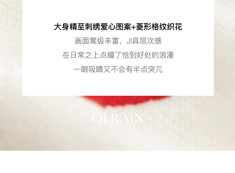 - “精致”是欧芮儿olrain品牌文化的核心,欧芮儿认为,精致的女人,不但要外在动人,更要内在迷人,内外兼修,有魅力、有气质、有内涵,自信而不自傲,优雅而不矫揉,自有万种风情而不轻浮,更不故作矜持。