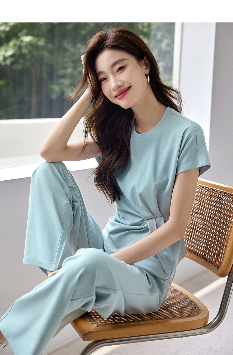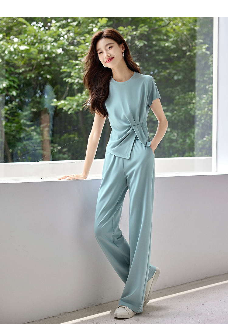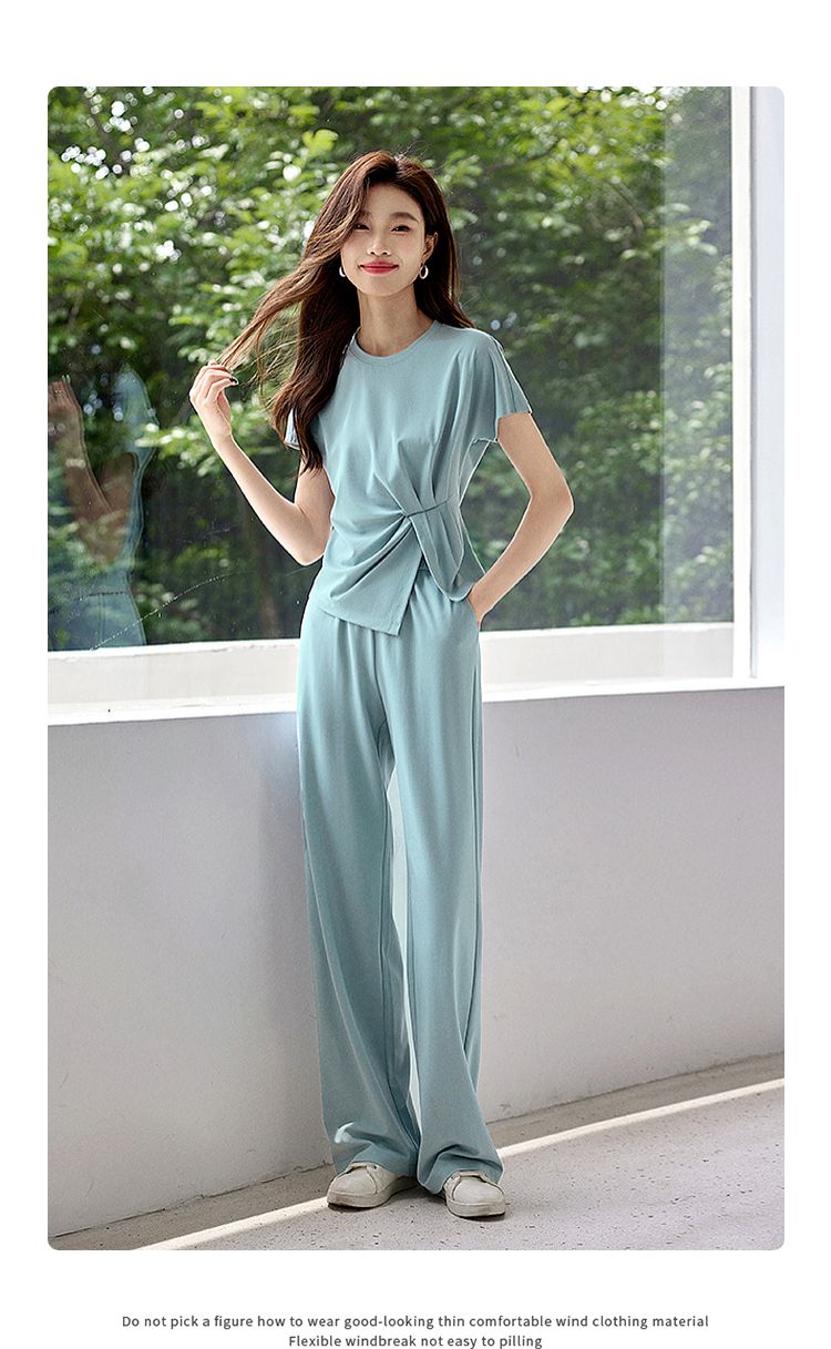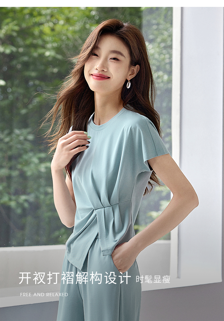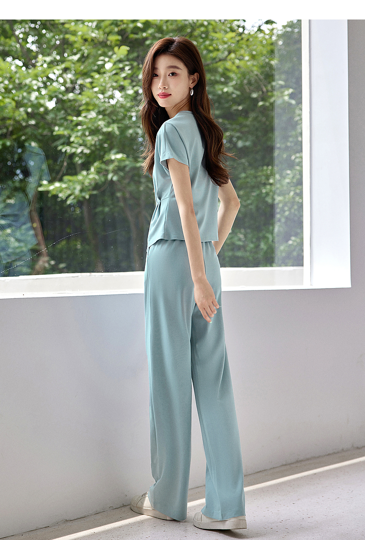 【专属特价】熙世界休闲套装新款夏装搭配一整套不规则别致上衣阔腿裤两件套