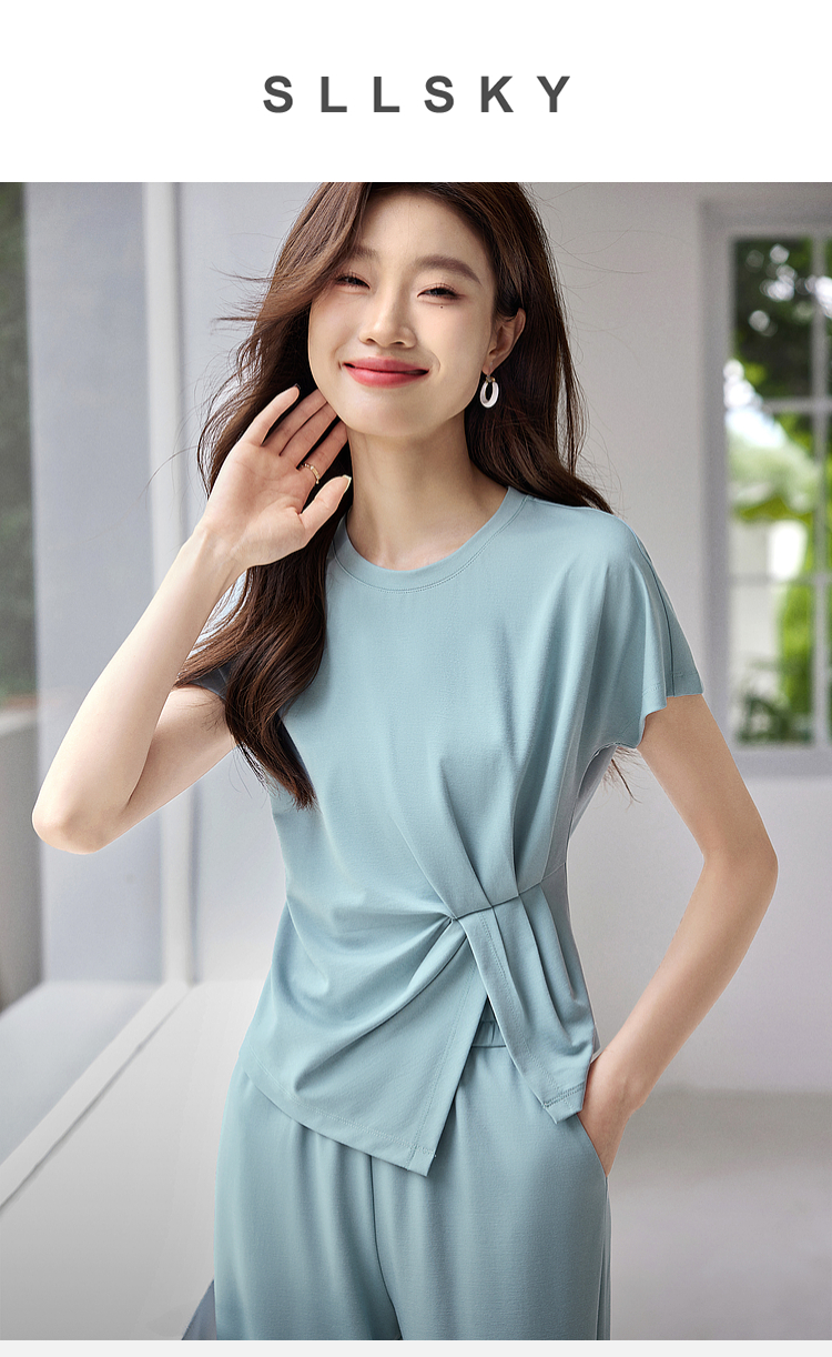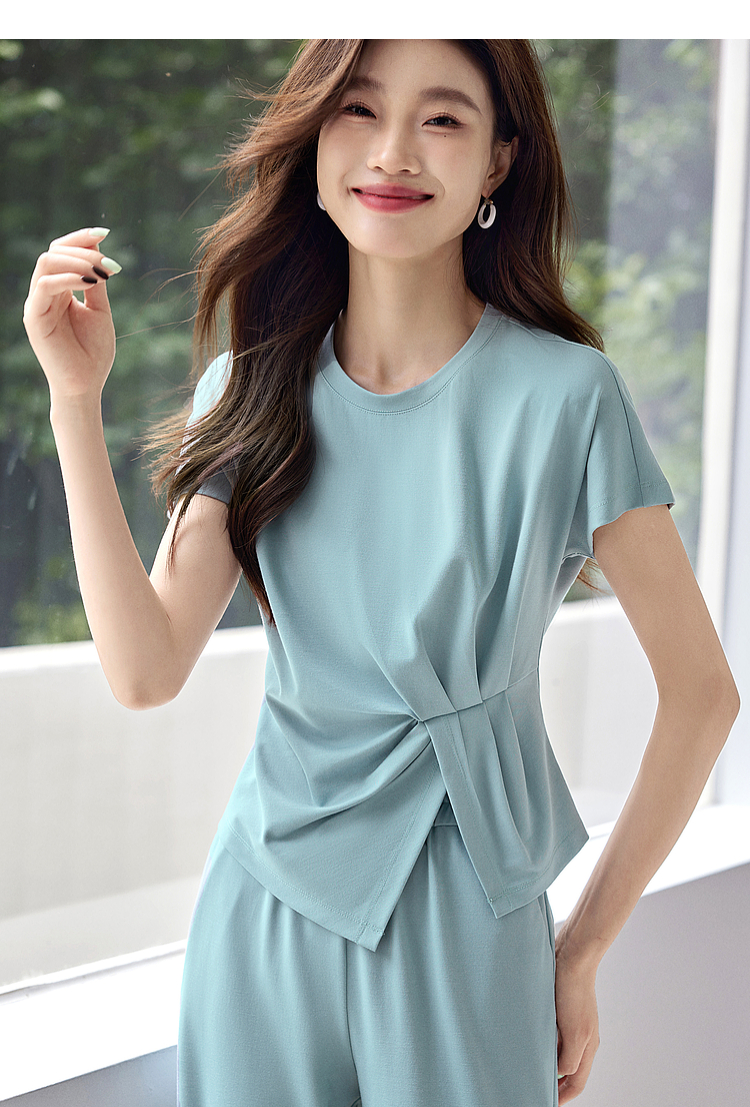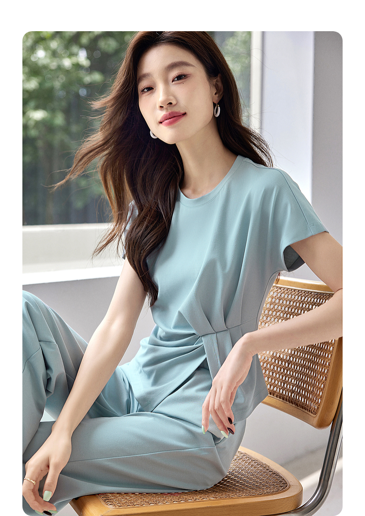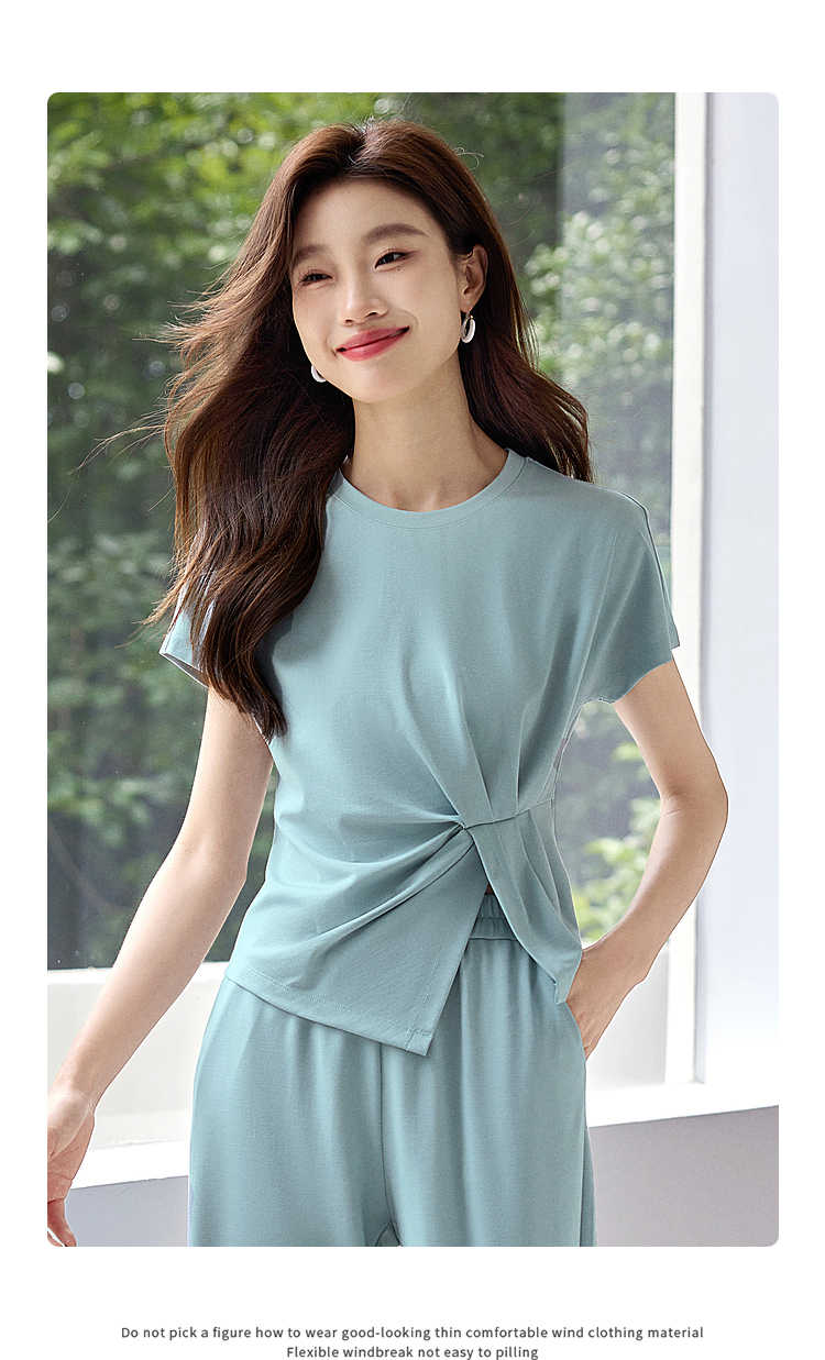 【专属特价】熙世界休闲套装新款夏装搭配一整套不规则别致上衣阔腿裤两件套
