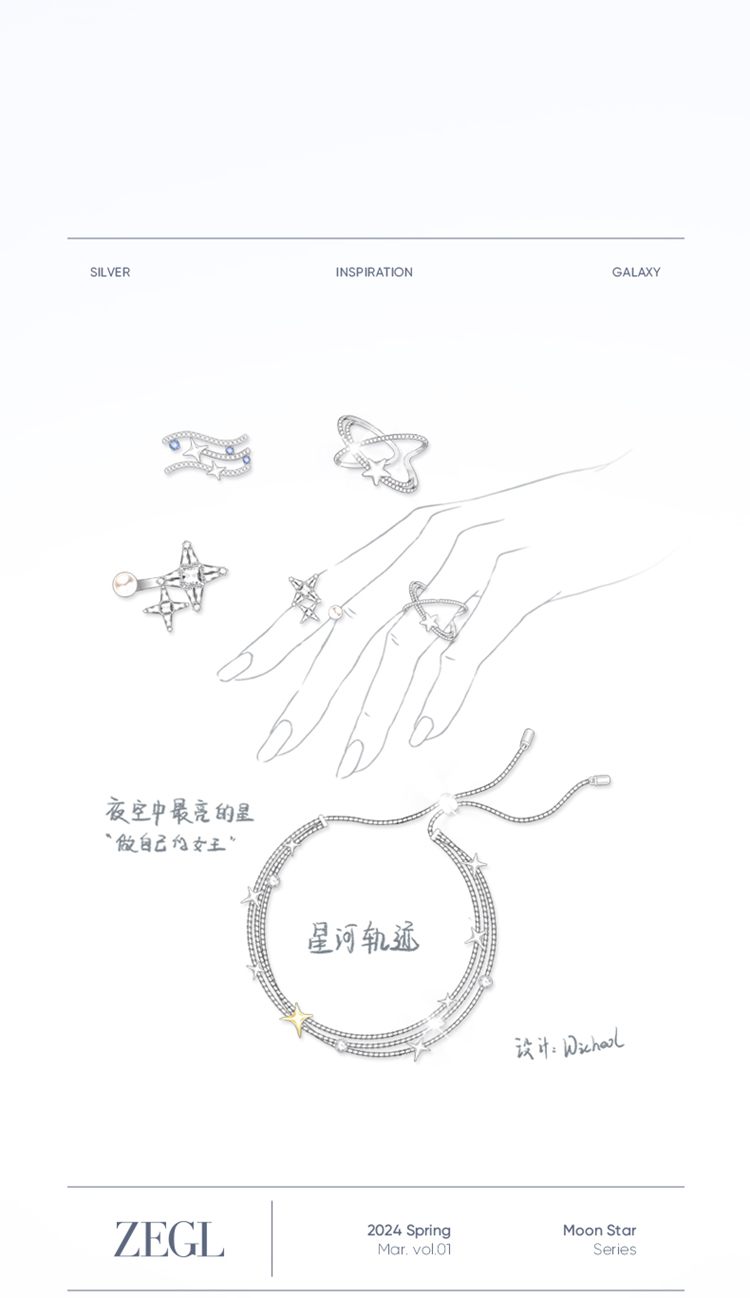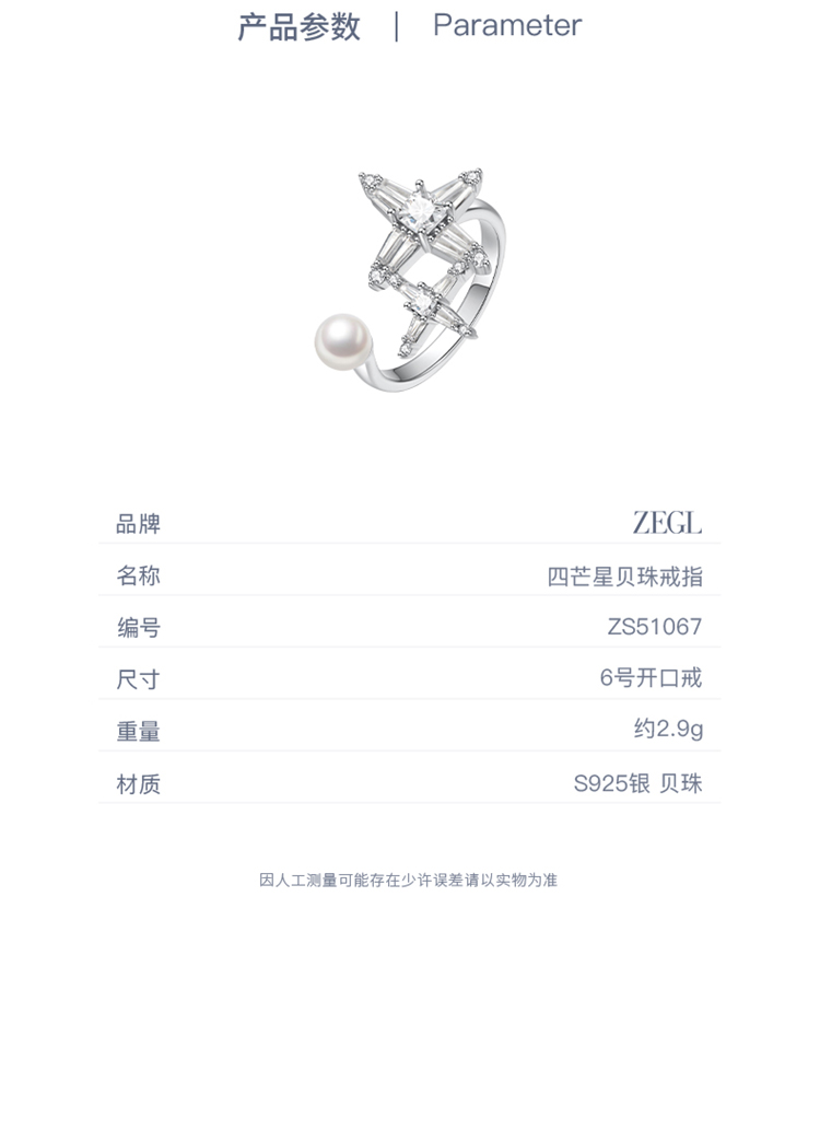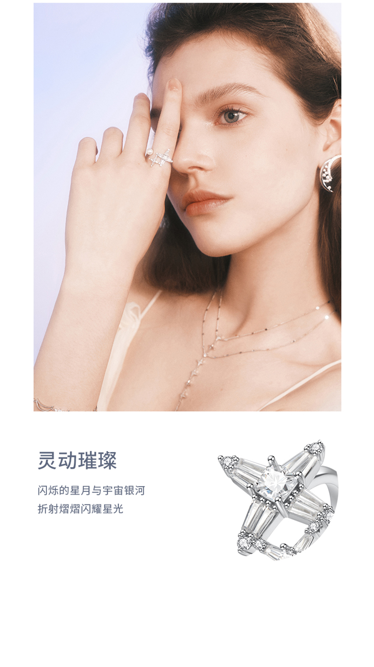ZEGL设计师月映星河系列925银星星戒指女小众设计开口食指环尾戒