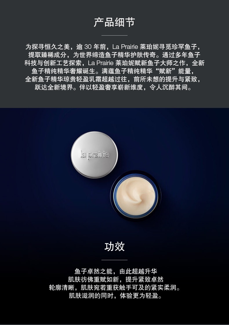 La prairie/莱伯妮LP 蓓丽 鱼子精华琼贵轻盈乳霜/滋润 透薄面霜 紧致保湿
