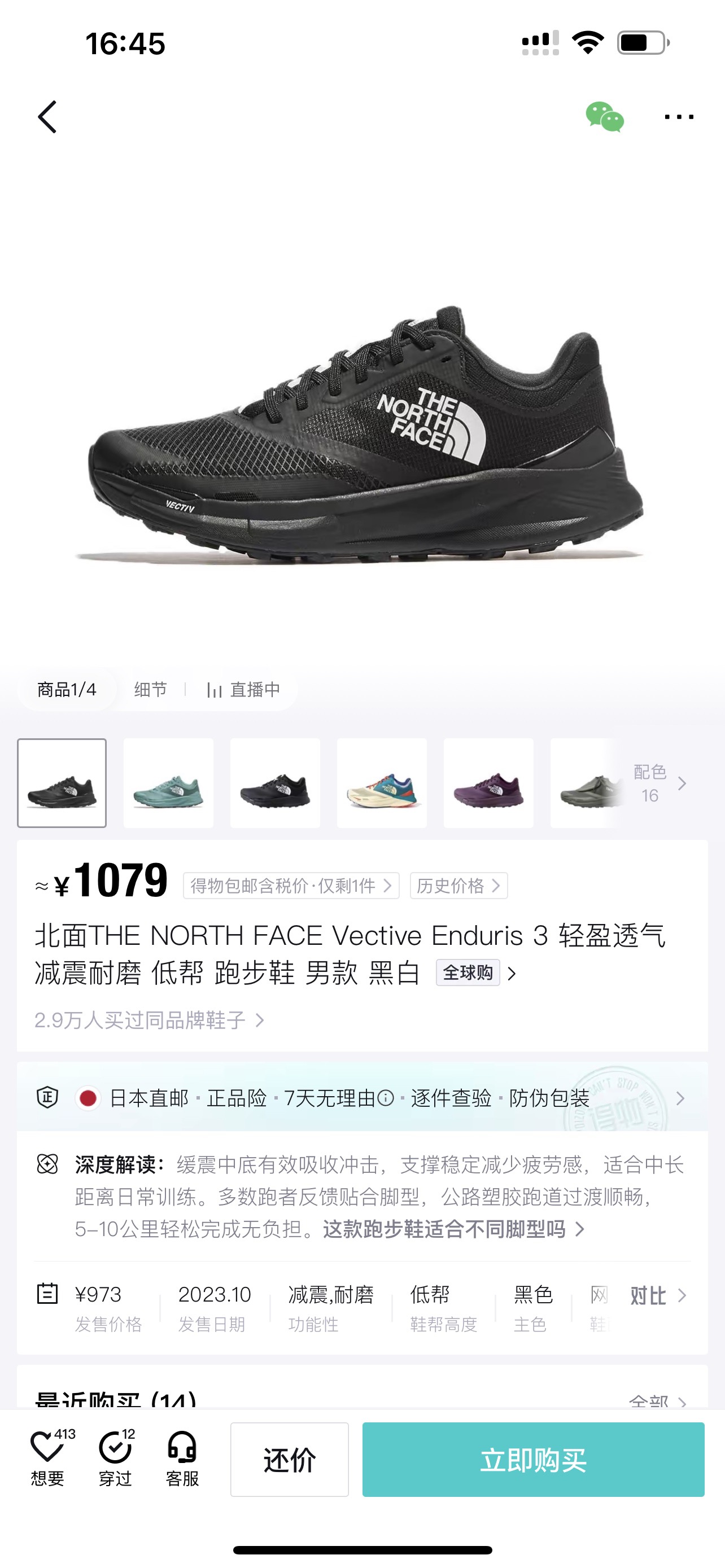 TNF Vectiv Traval 舒适防滑耐磨低帮跑步鞋 Z-15885