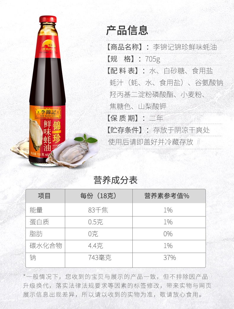 李锦记 蚝油 锦珍鲜味蚝油 烧烤火锅蘸料 705g