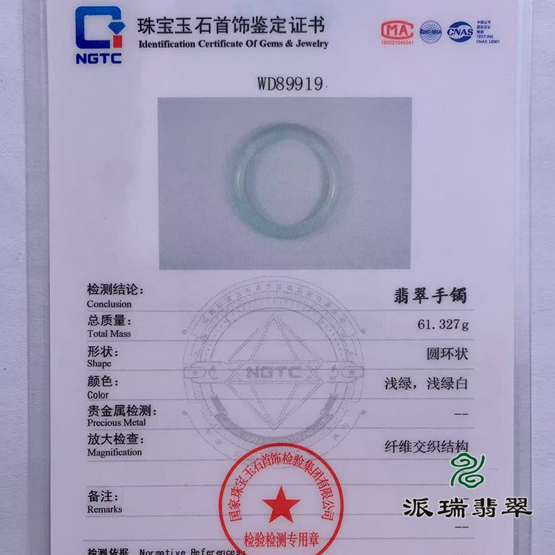 派瑞翡翠 翡翠手镯 糯种 浅绿