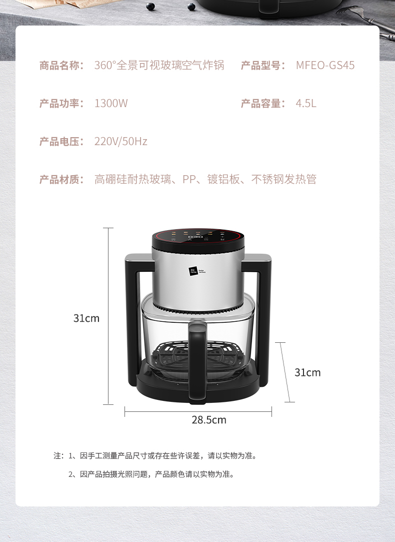 MFEO-GS45米技 360°全景可视玻璃空气炸锅-S