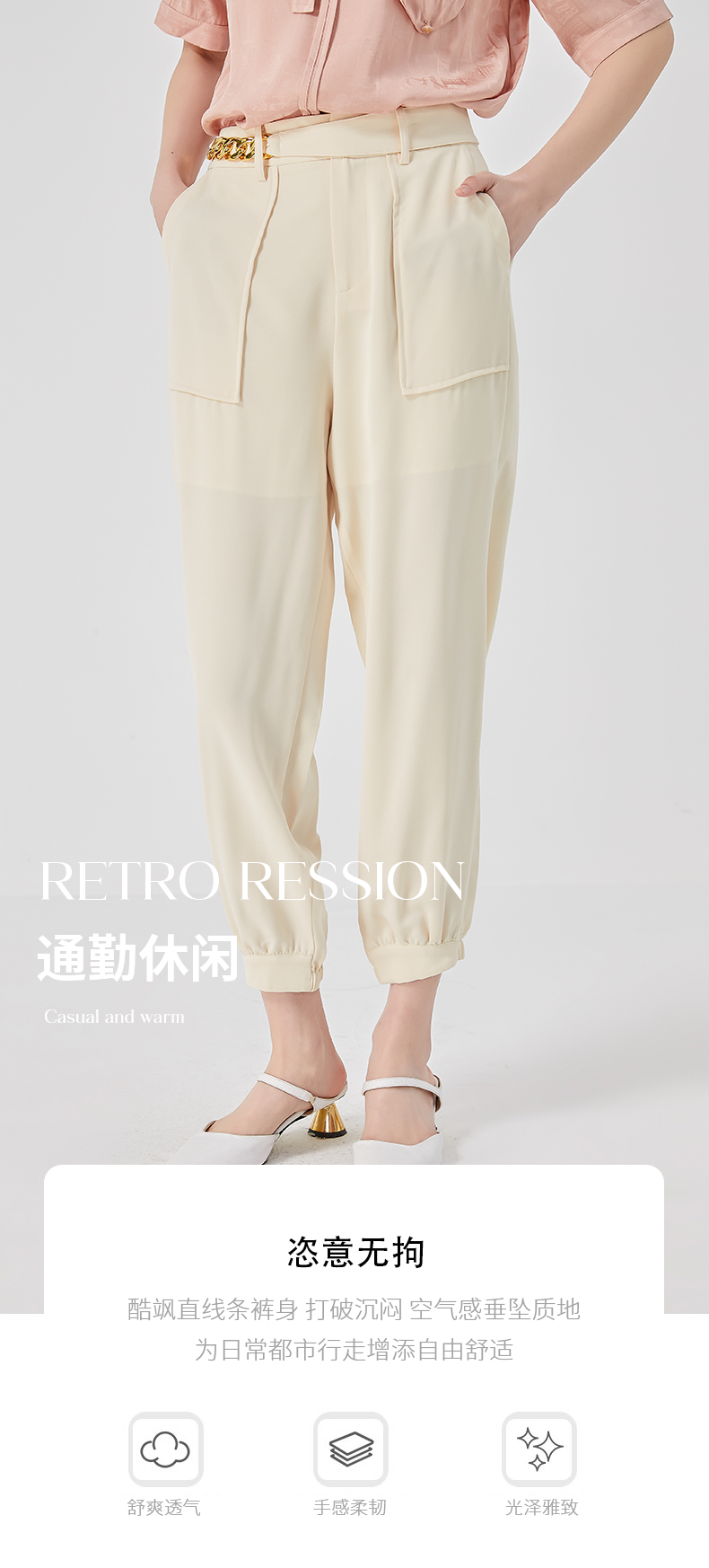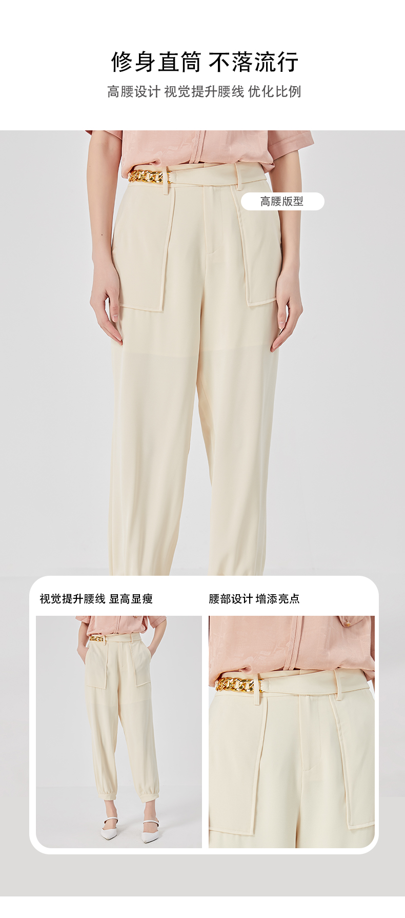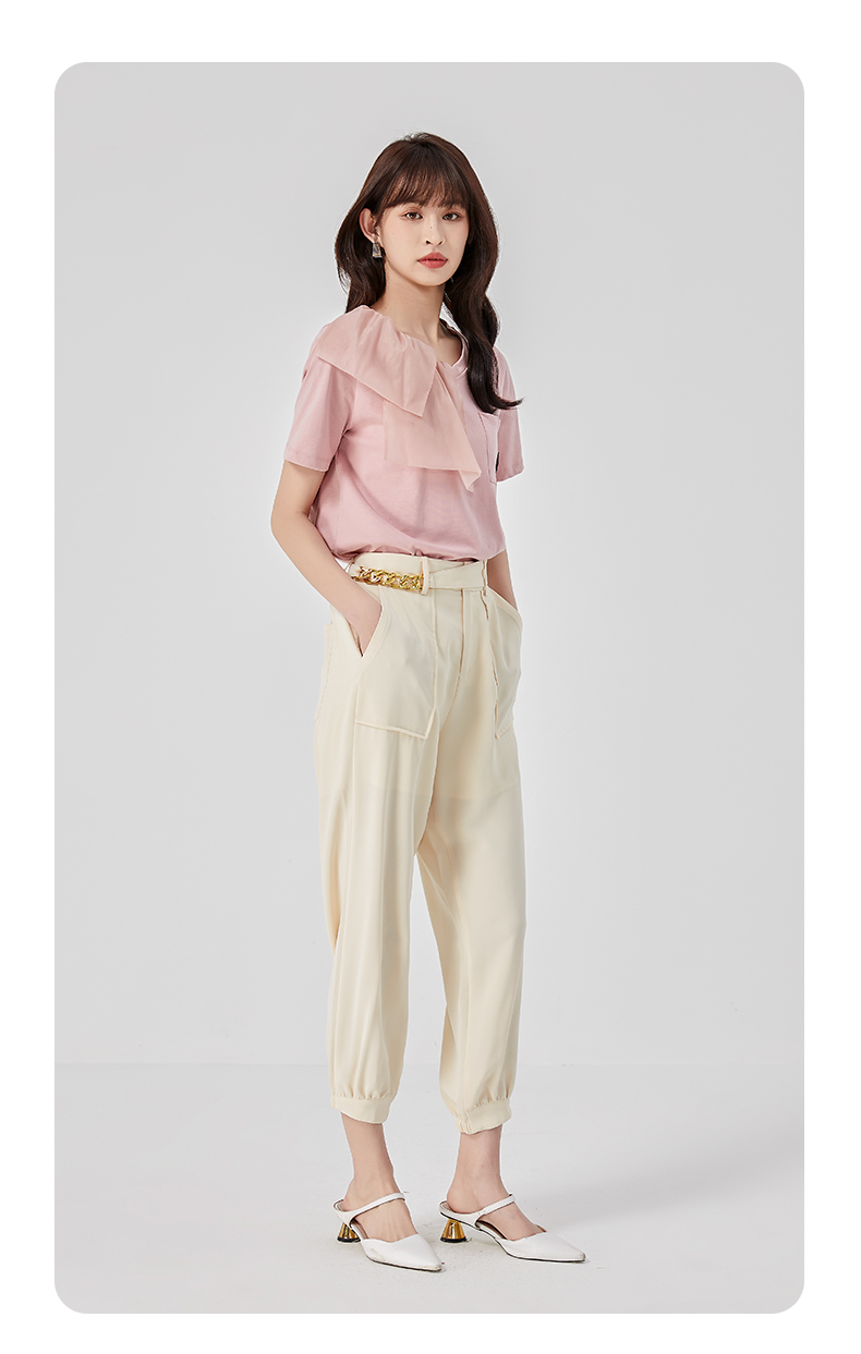 oldcolour2023夏新款设计感高腰休闲束脚直筒宽松长裤女O23073351