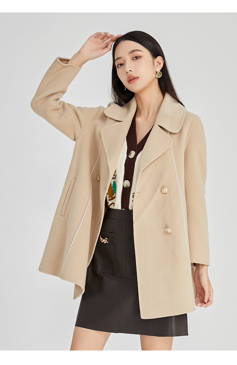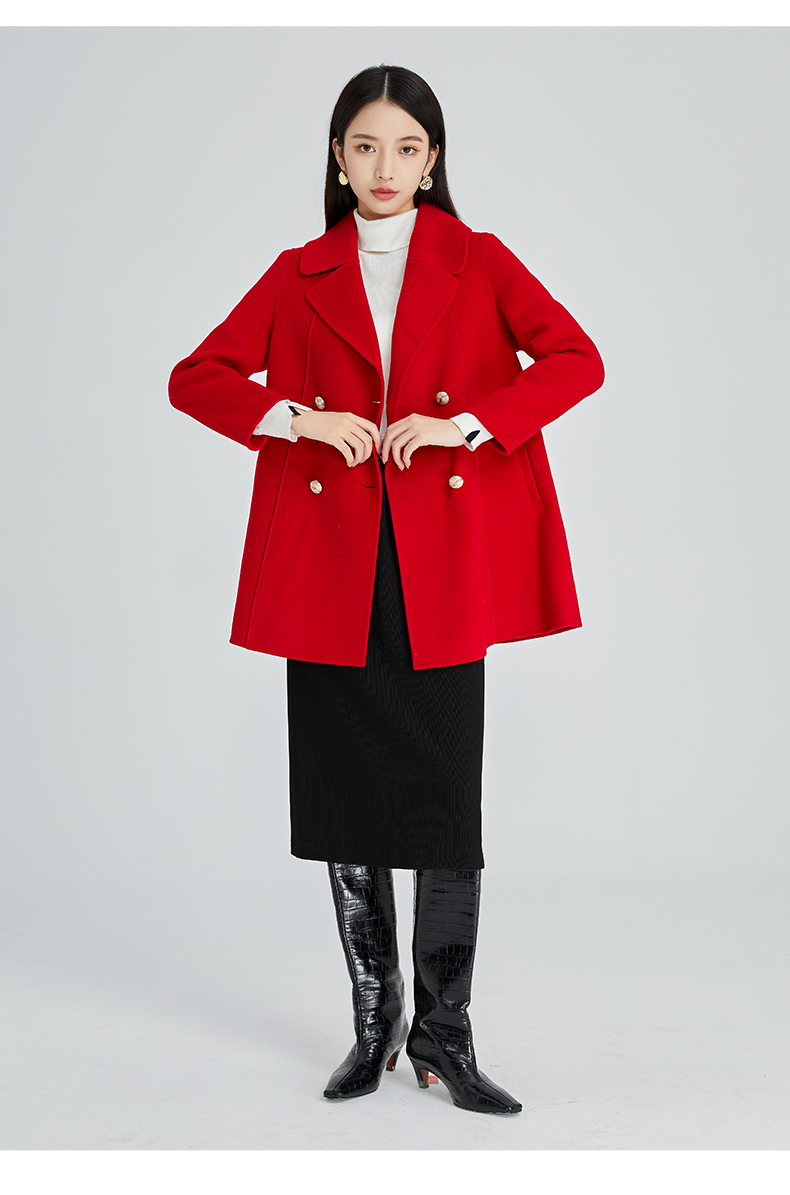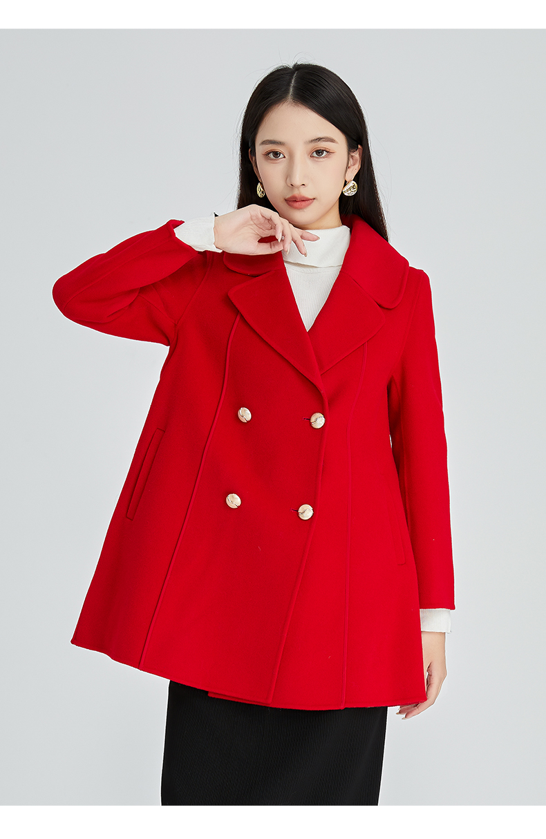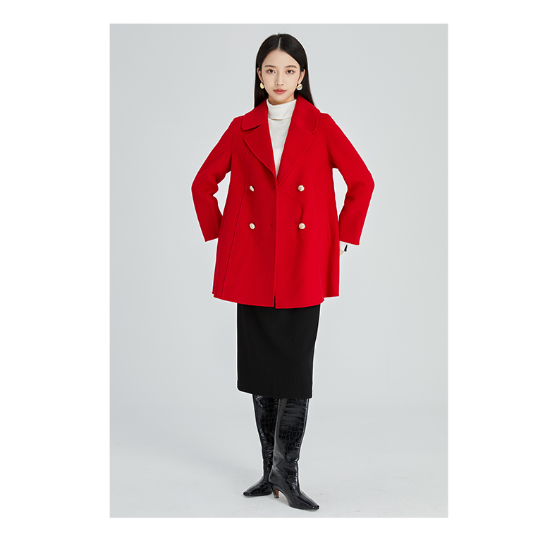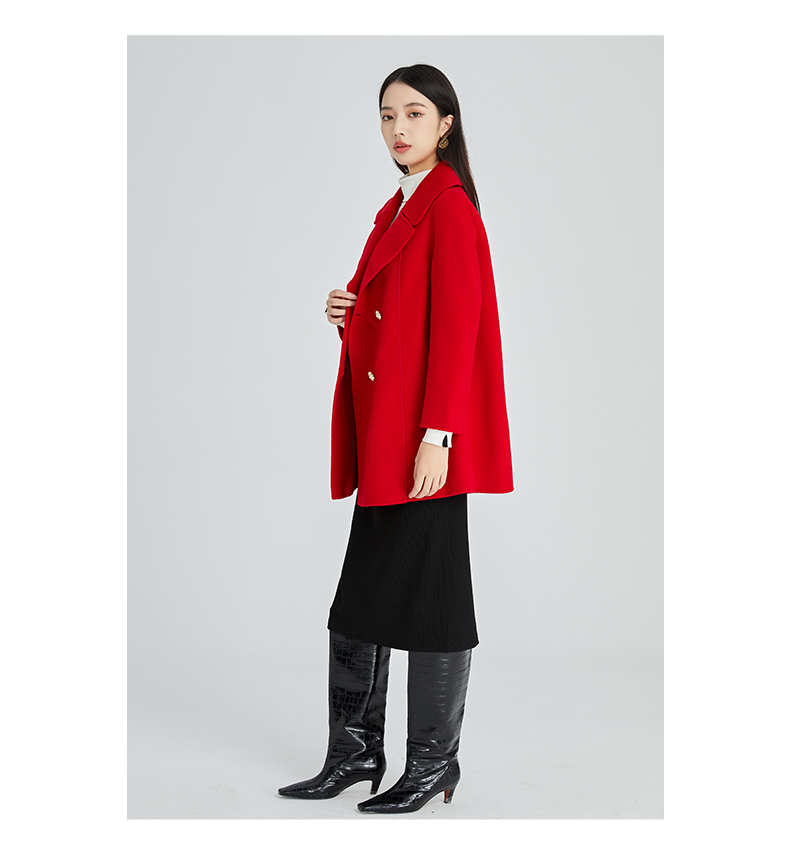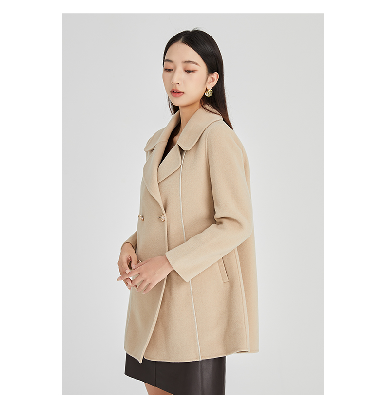 oldcolour2022冬季新款宽松气质简约中款双面呢羊毛大衣外套女