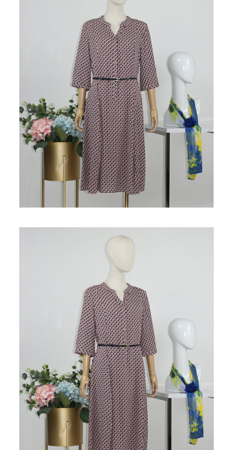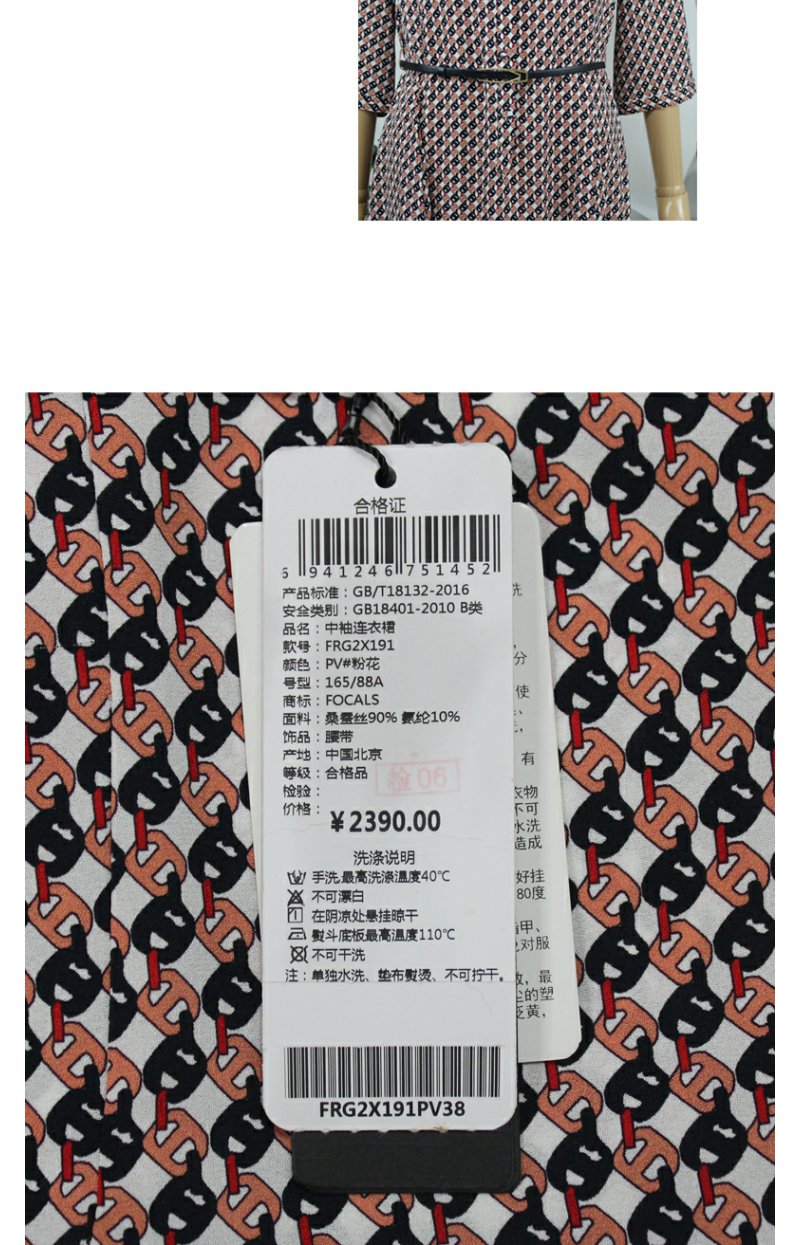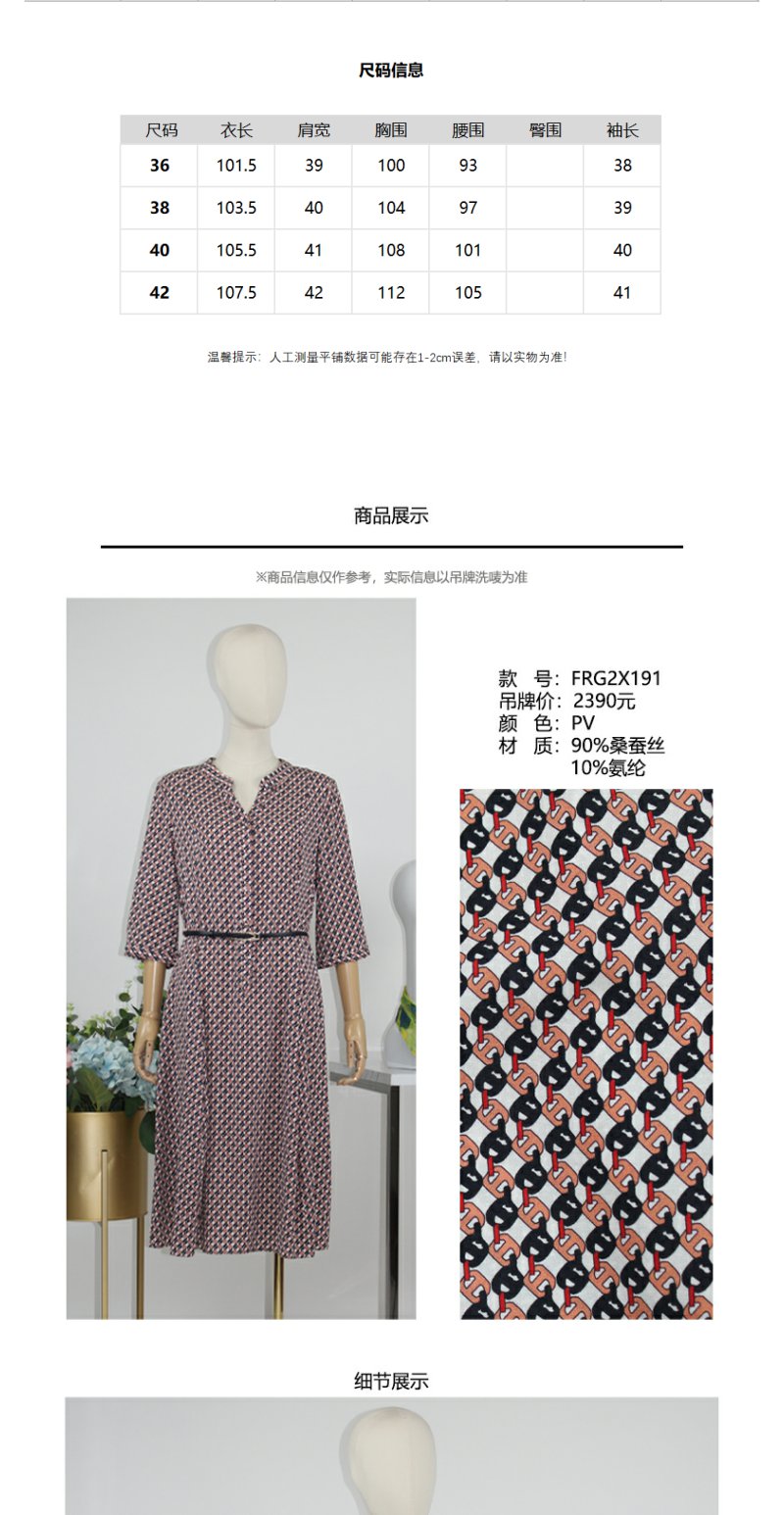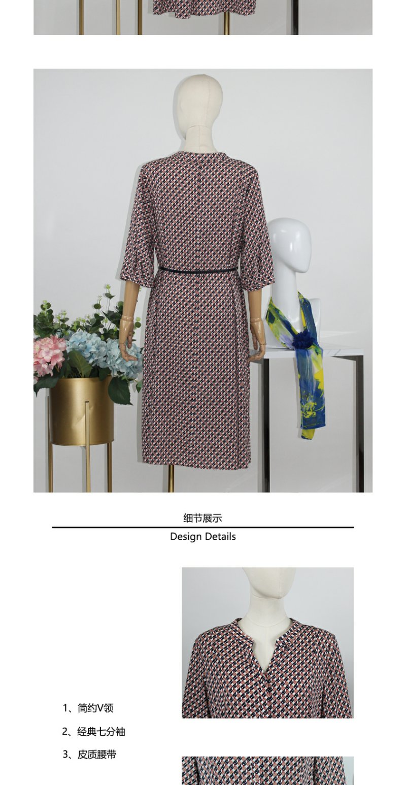 FOCALS福柯斯秋季桑蚕丝七分袖修身印花连衣裙FRG2X191PV