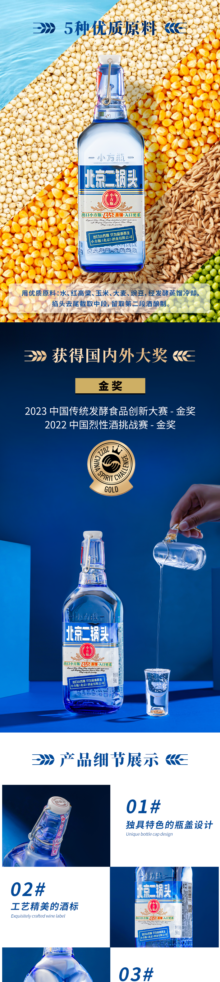 【金奖品质】北京二锅头出口金奖小方瓶42度蓝方老熟清香型白酒粮食酒