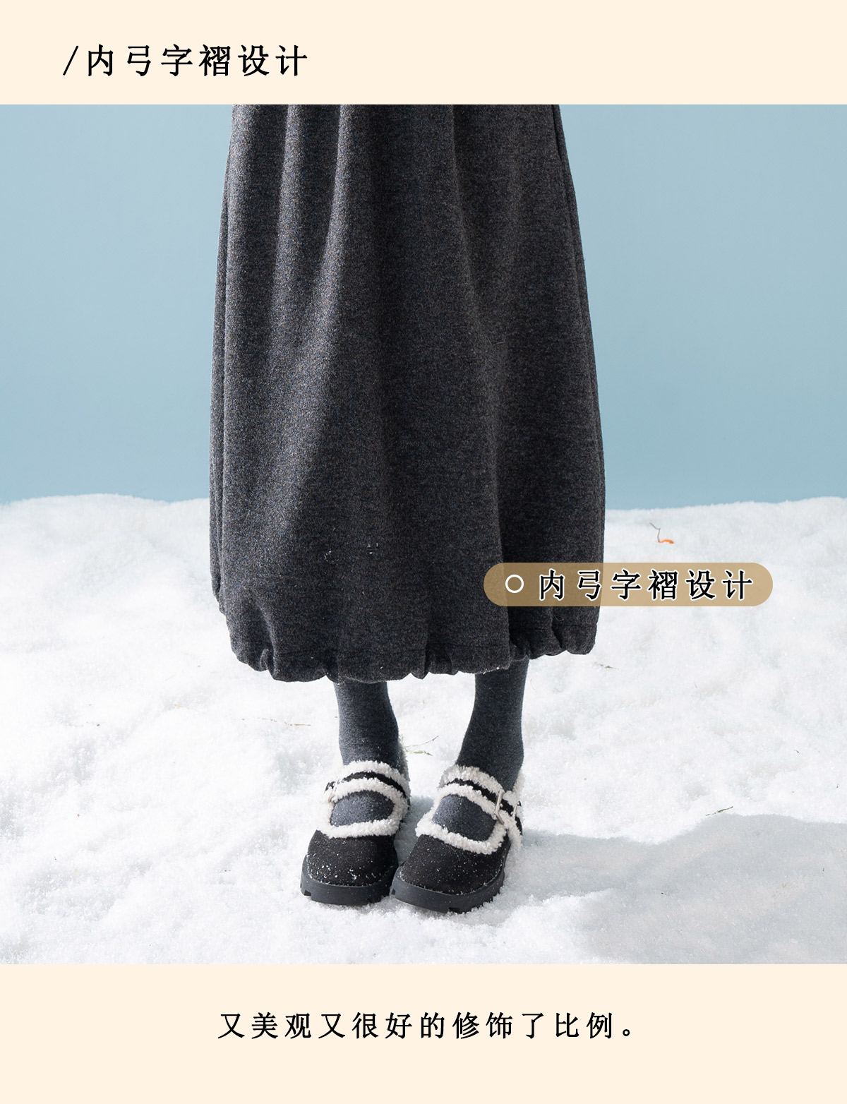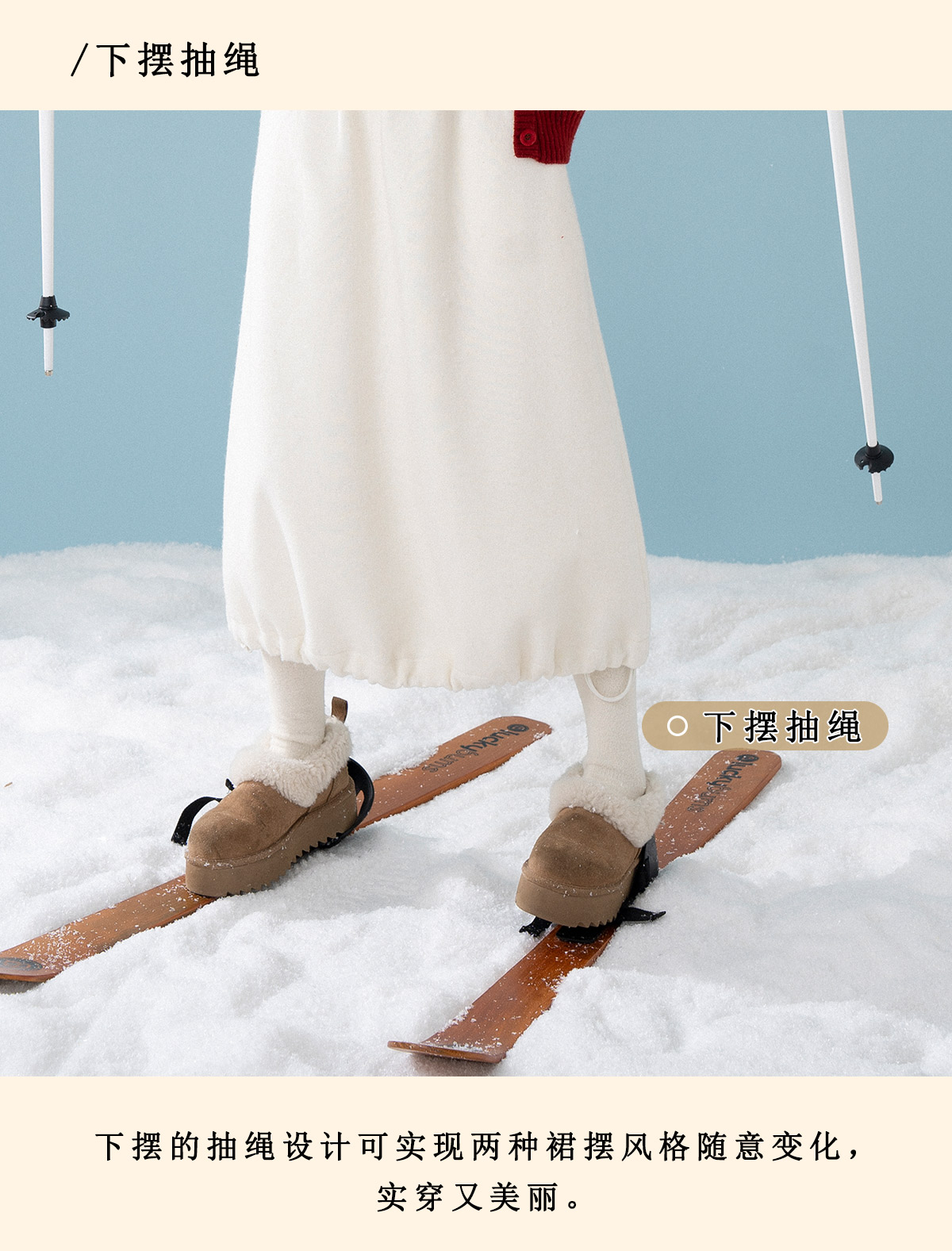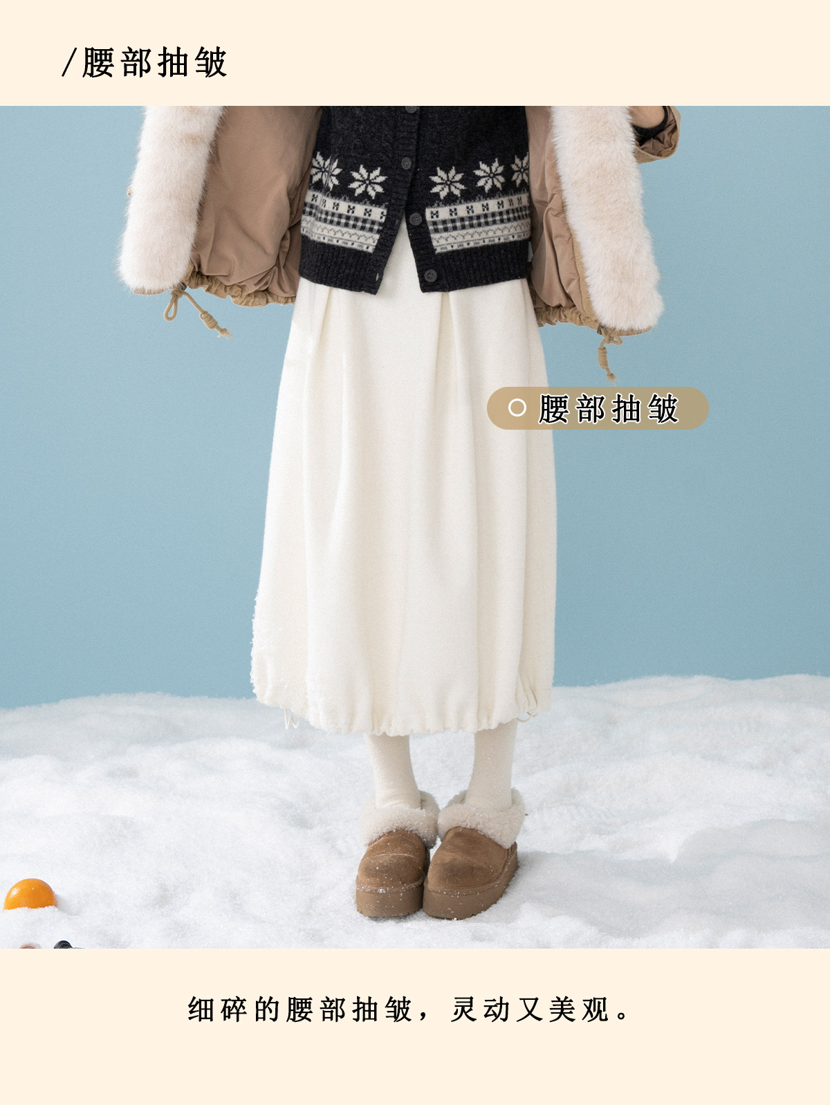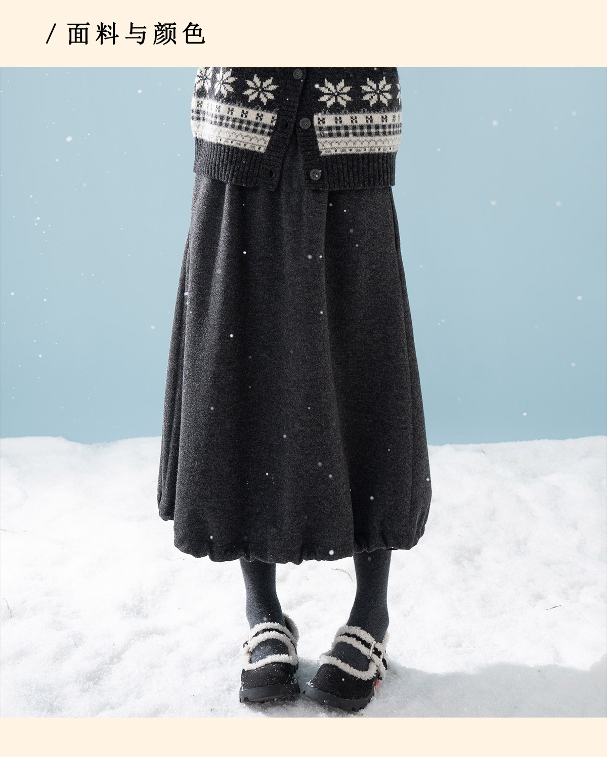 浮生八记/25D232/羊毛针织毛呢花苞捏褶抽绳半裙
