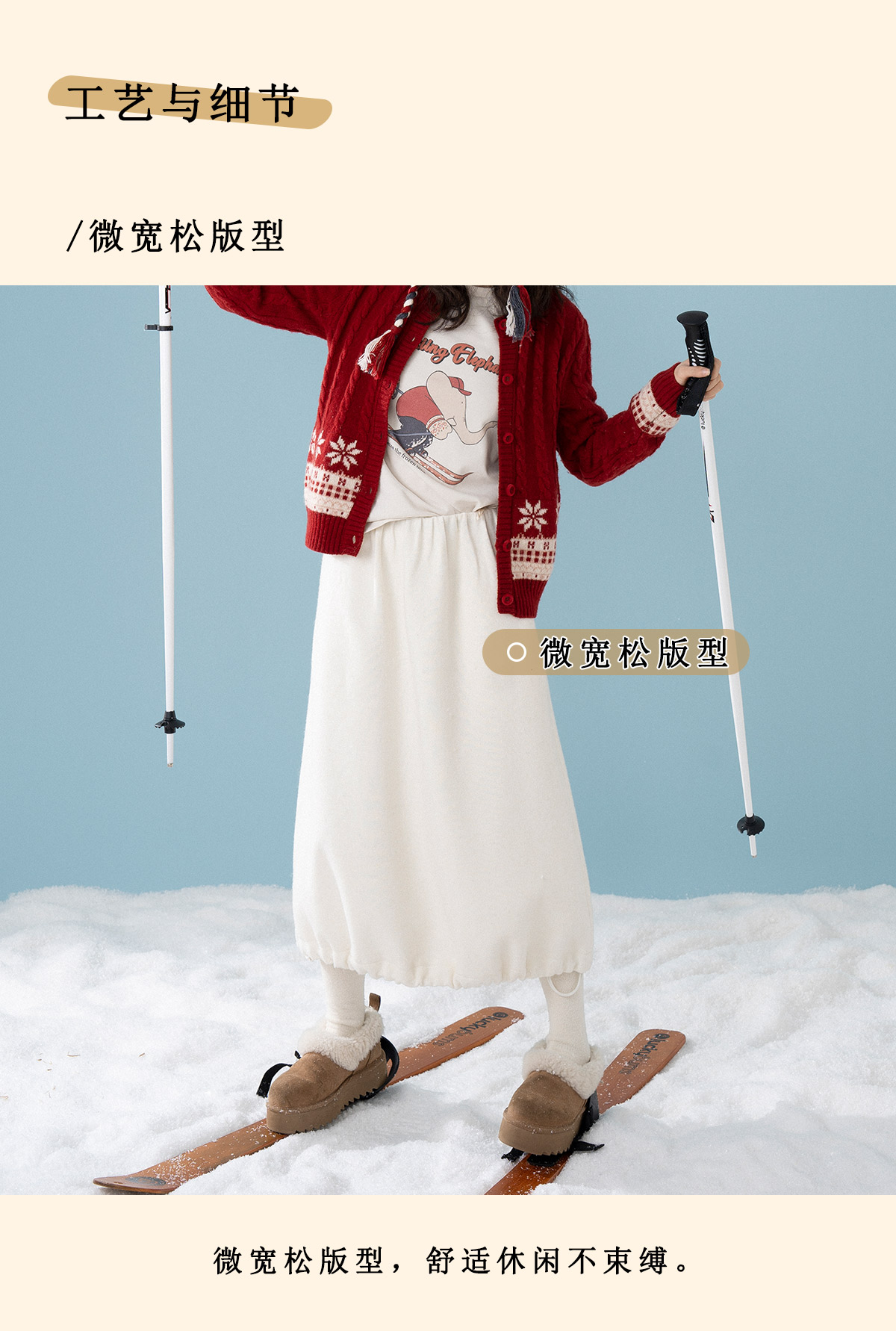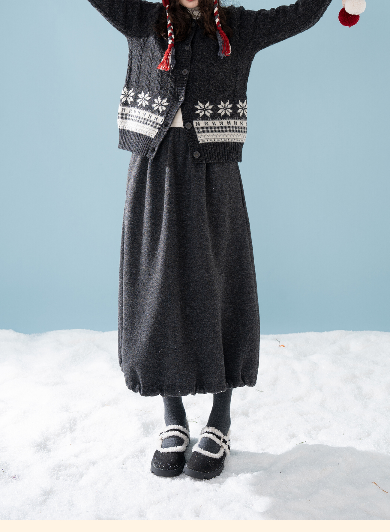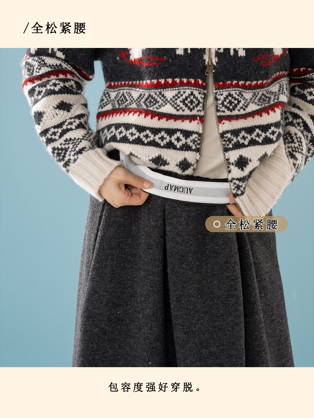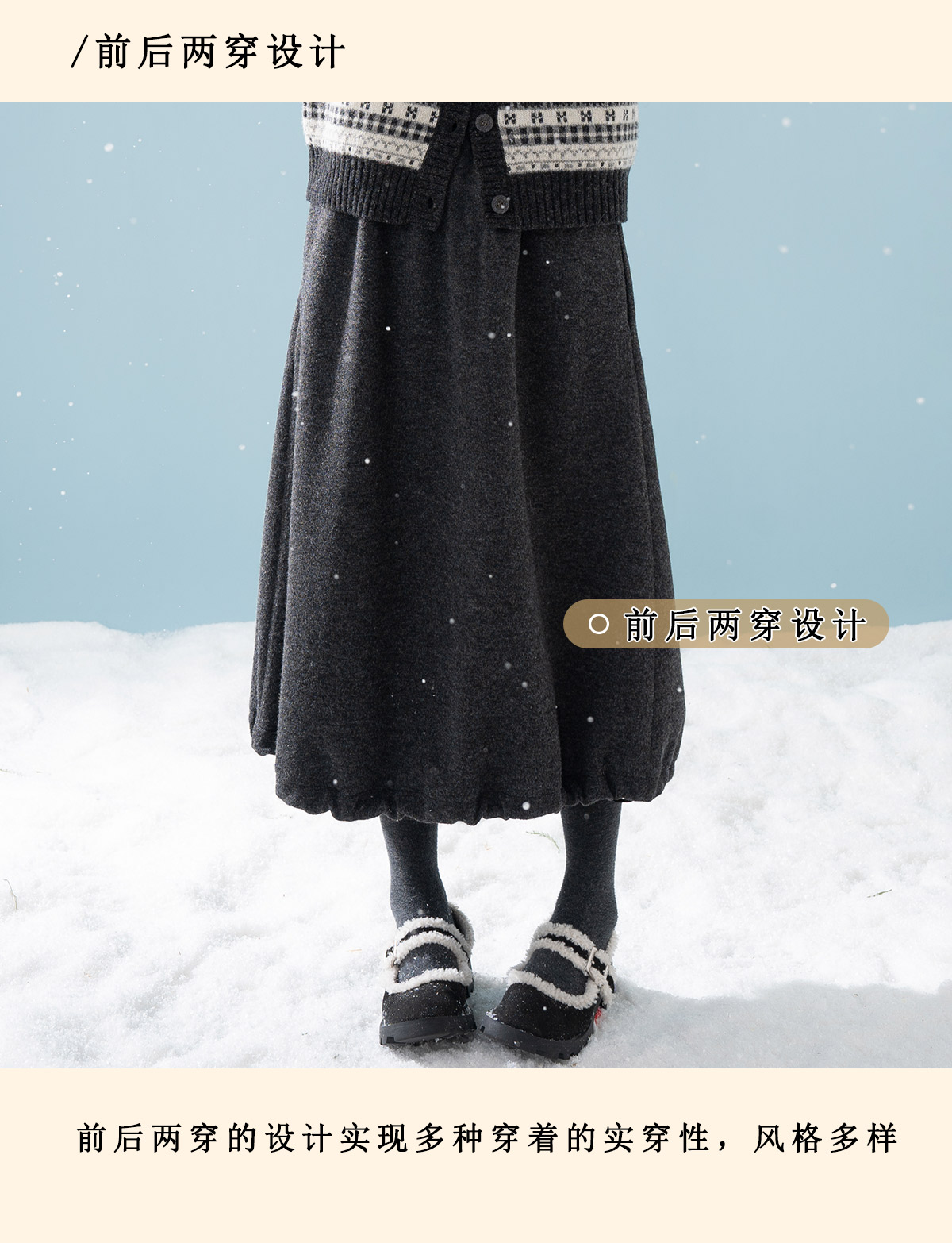 浮生八记/25D232/羊毛针织毛呢花苞捏褶抽绳半裙