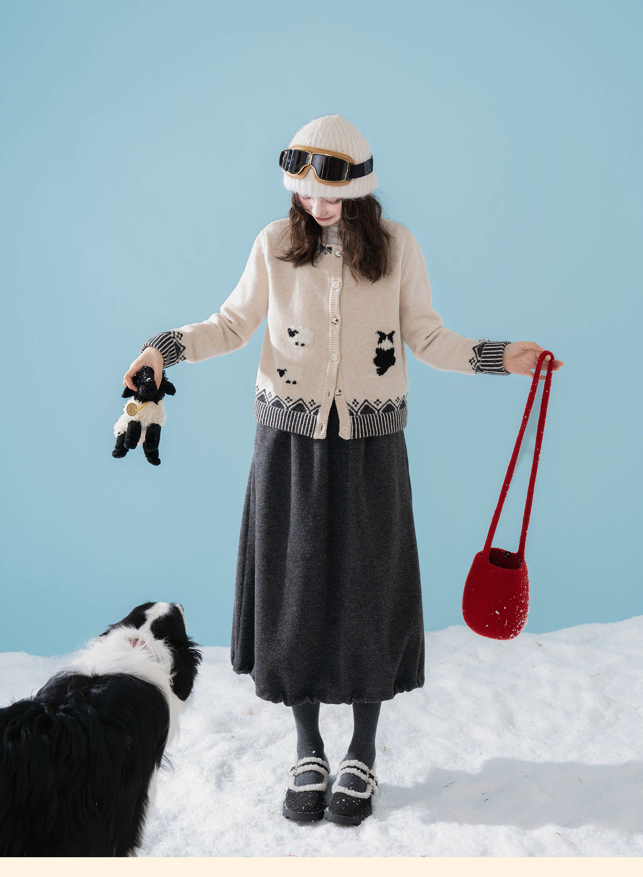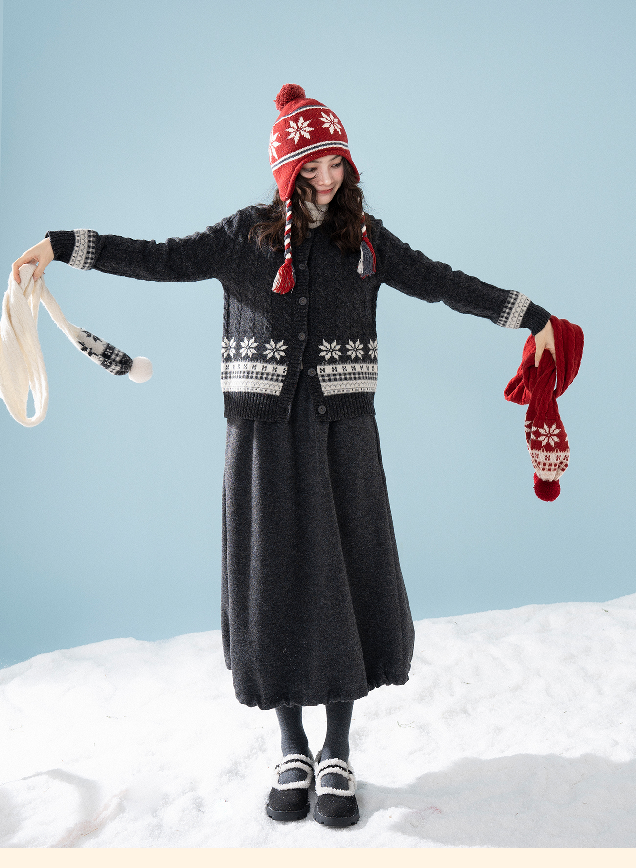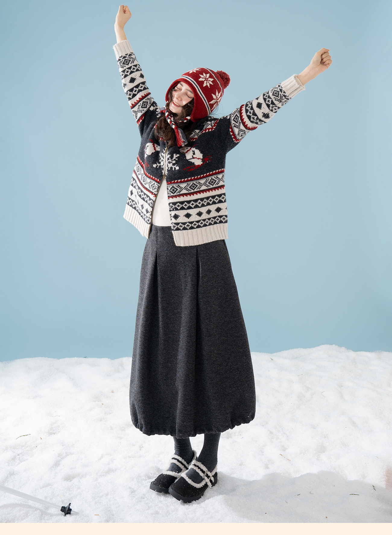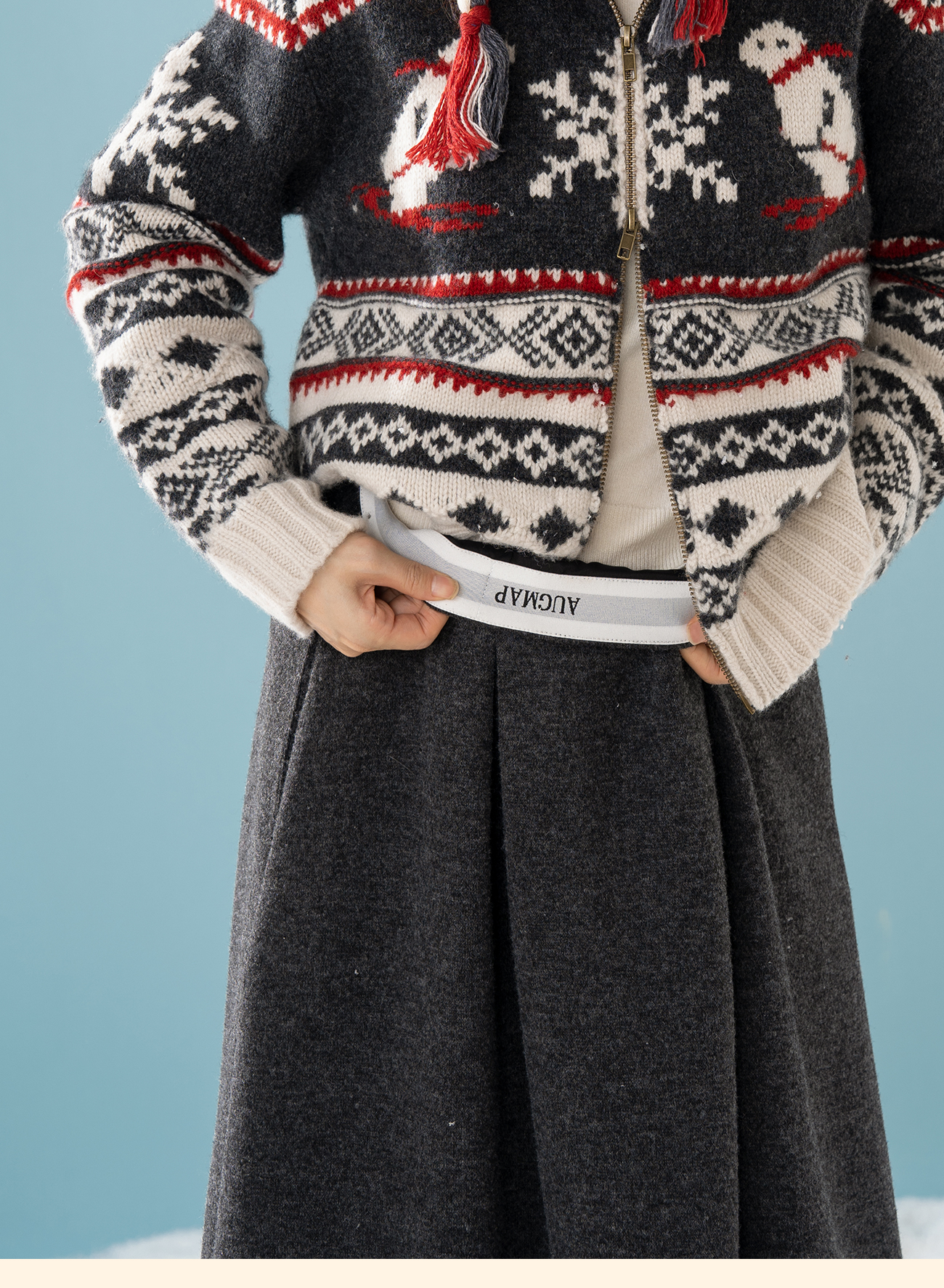 浮生八记/25D232/羊毛针织毛呢花苞捏褶抽绳半裙