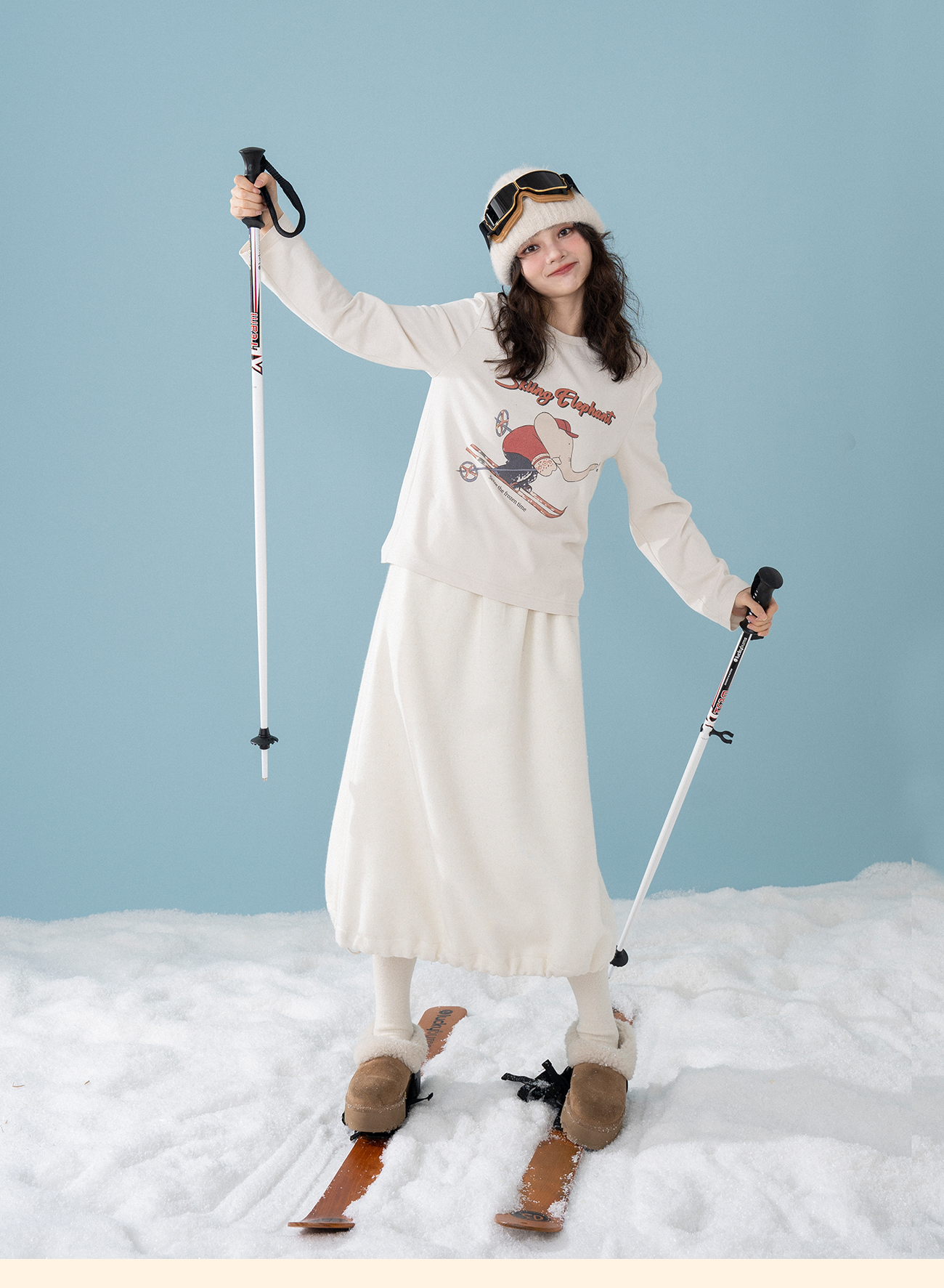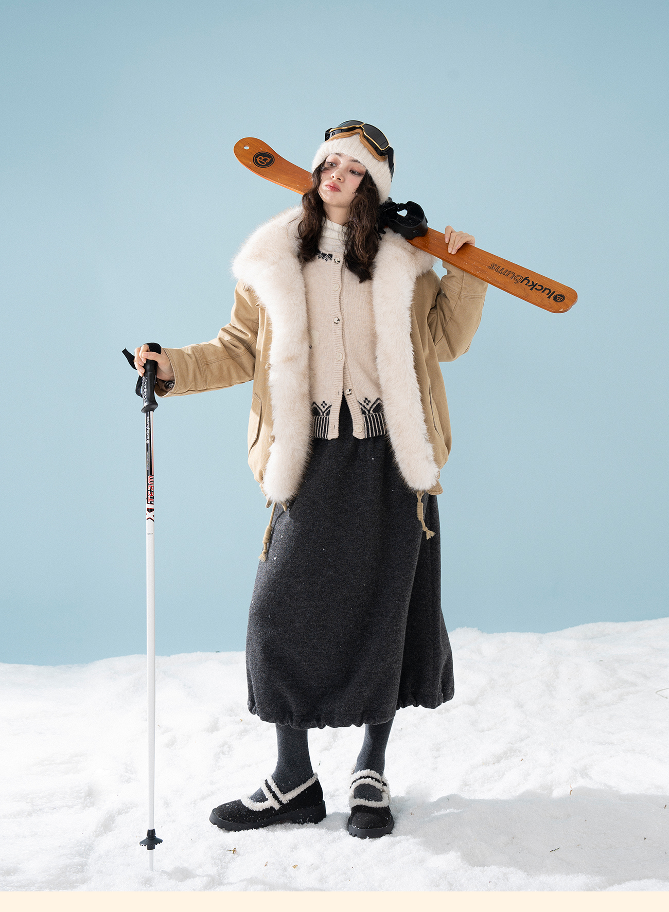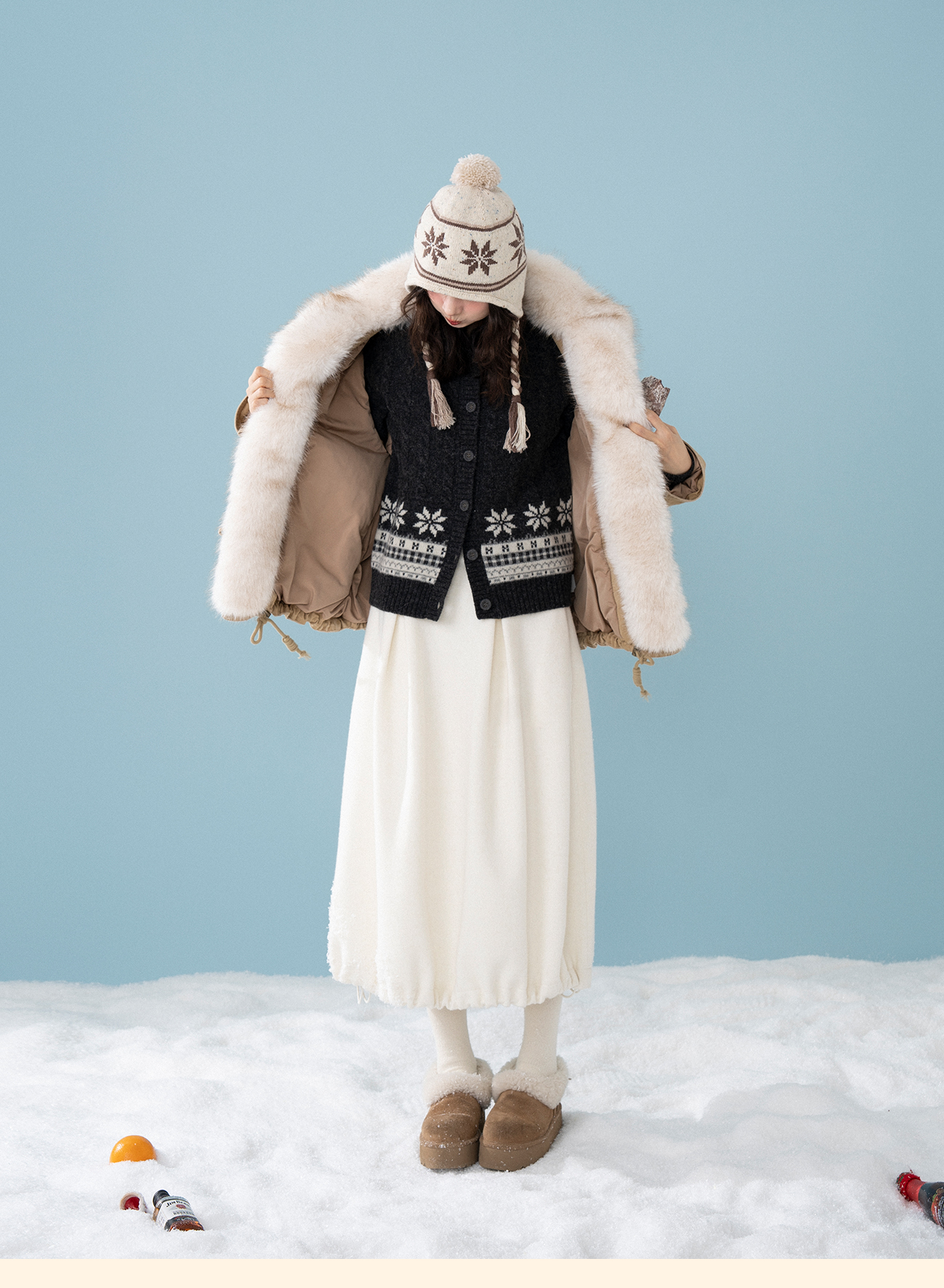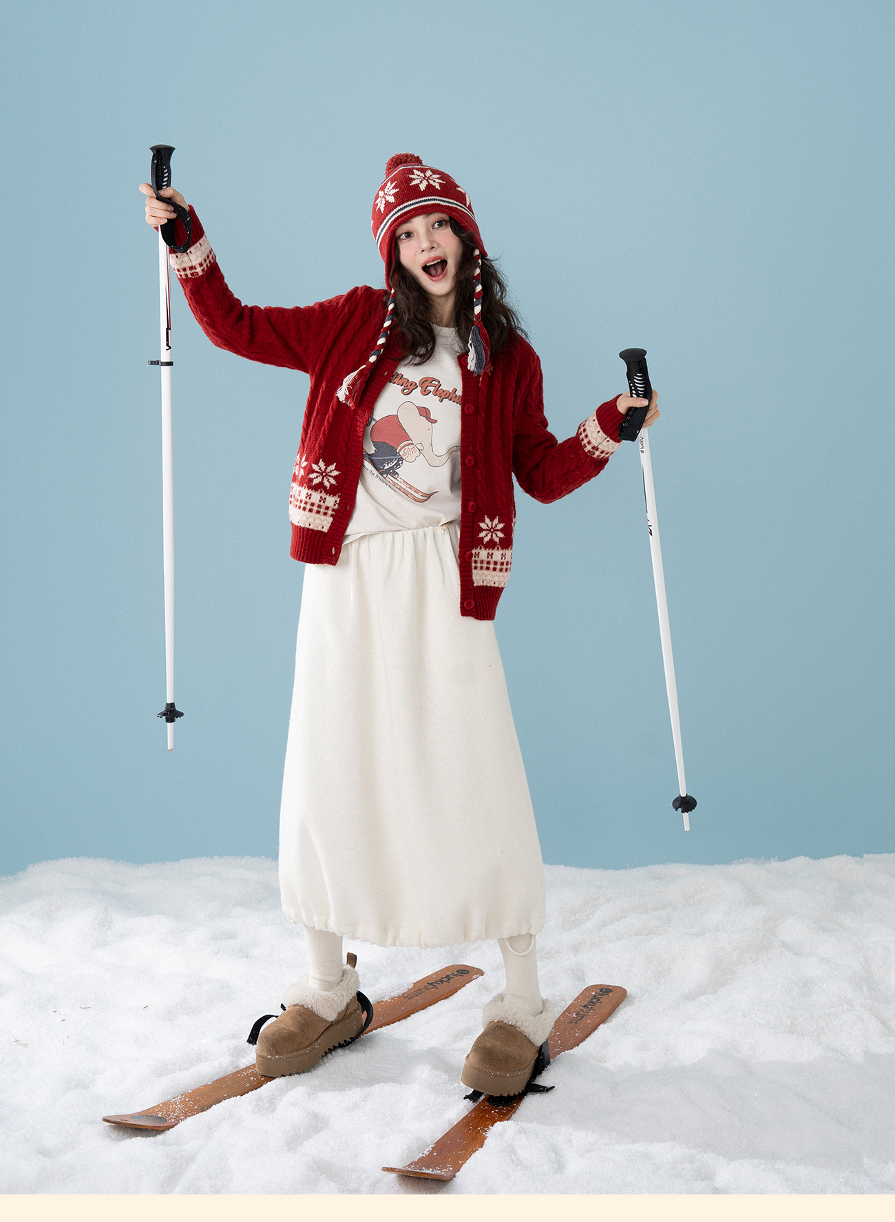 浮生八记/25D232/羊毛针织毛呢花苞捏褶抽绳半裙