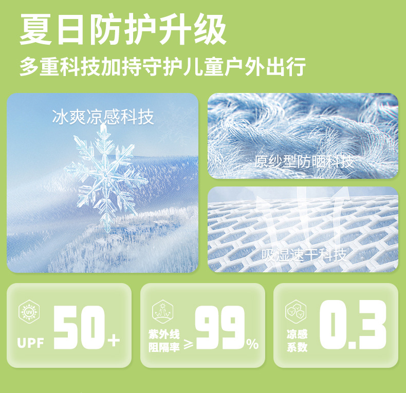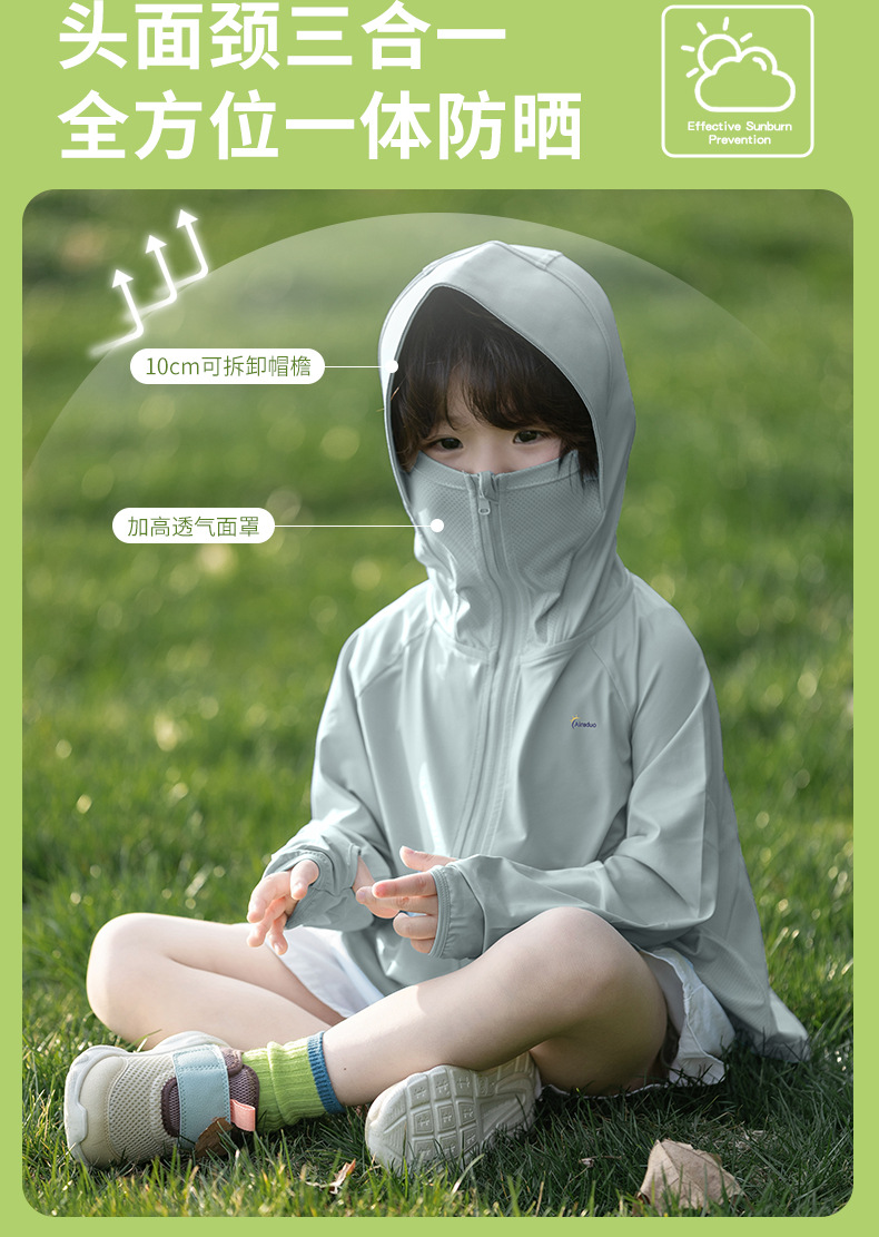 【儿童防晒衣❗️赠UPF50+防晒测试卡】夏日防护升级,冰爽凉感+原纱型防哂+吸湿速干科技,多重加持守护户外出行!新款男童女童冰凉丝轻薄透气防紫外线带帽檐防晒服外套