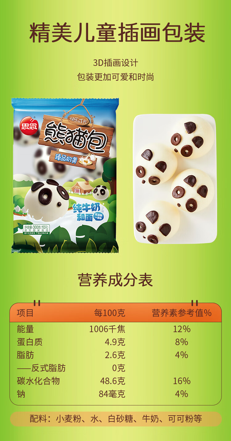 【百】思念快乐成长熊猫包臻品奶黄300g/袋