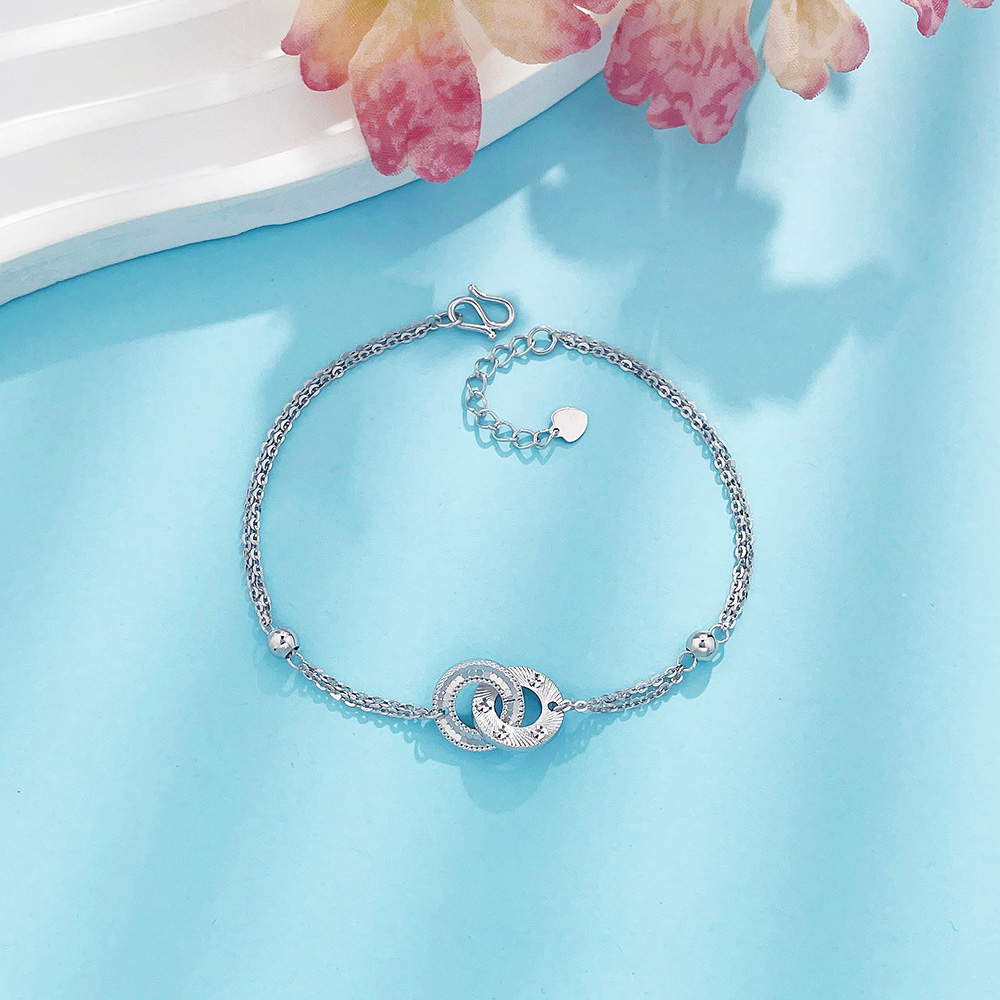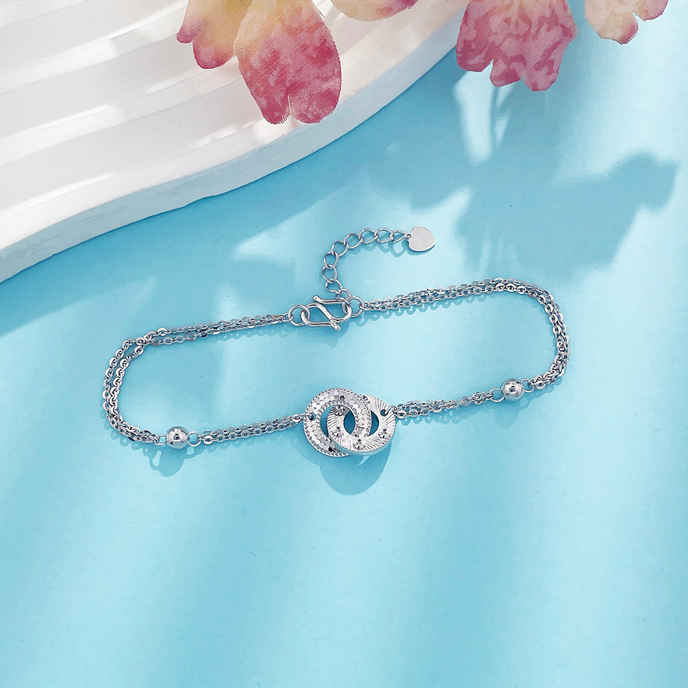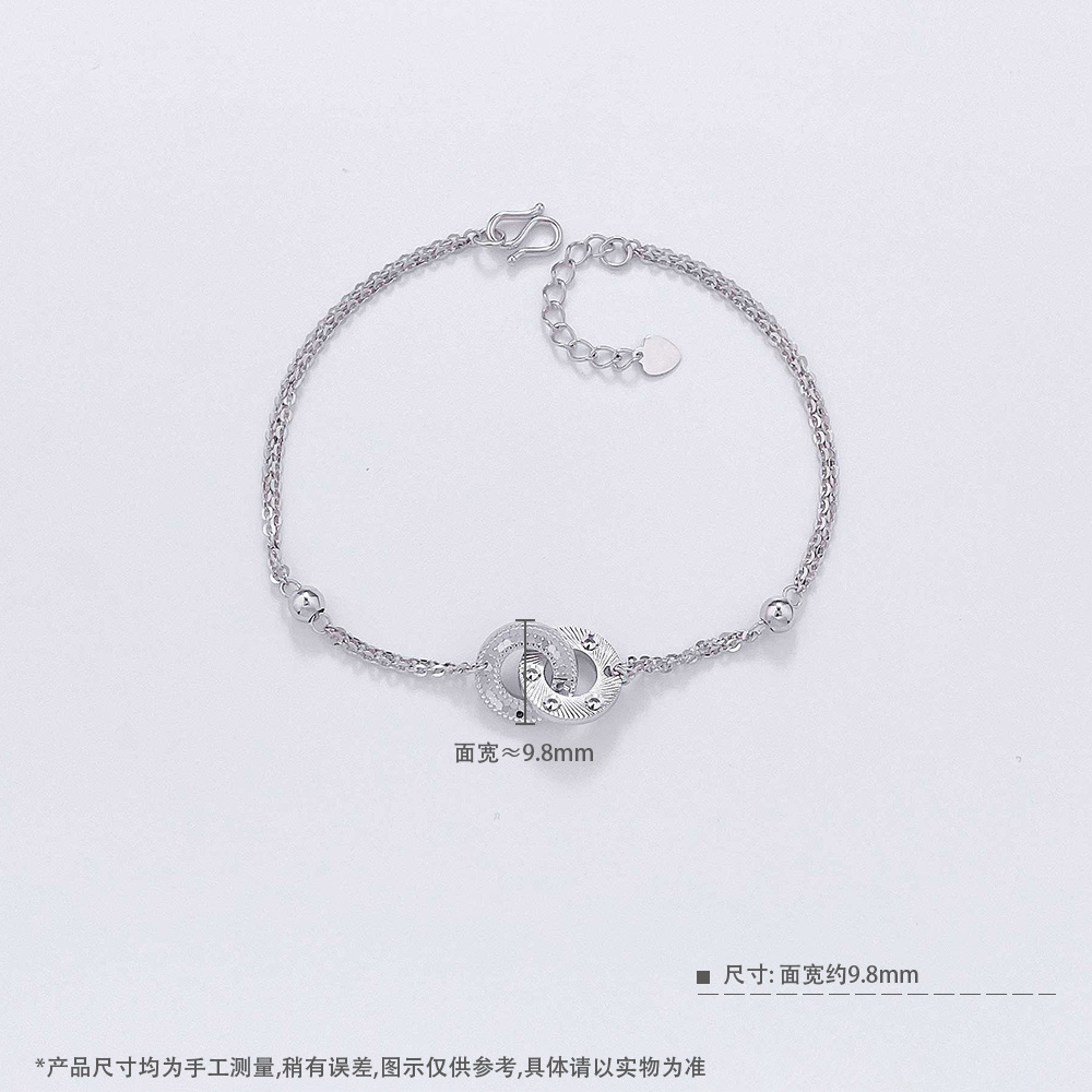 【限时8.8折】【线上铂金馆】PT950 #清新 铂金实心双层调节环环相扣鱼鳞仿钻几何双环手链(PTSL00077)预售产品下单后不退款不退货不换货不补差价)