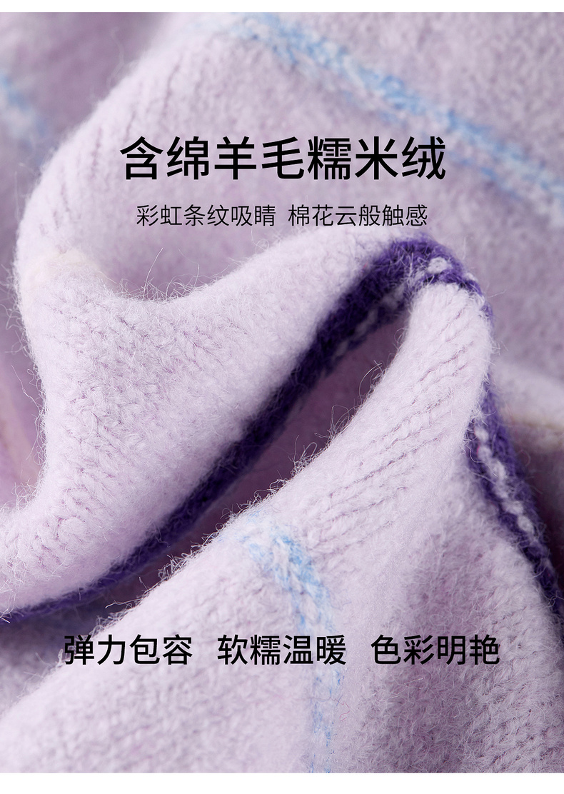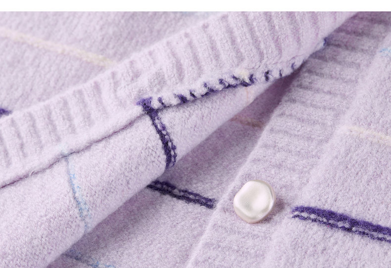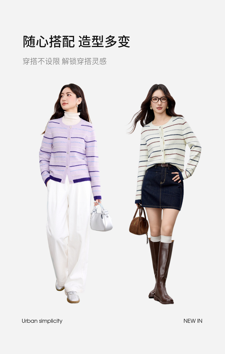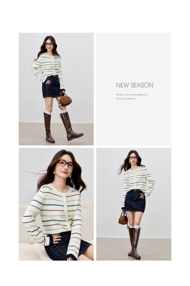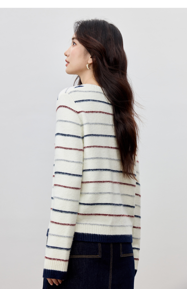 【内购】【含绵羊毛】通勤彩虹条纹珍珠沥色异形扣圆领长袖软糯开衫毛衣-W53EB3510