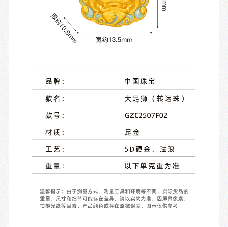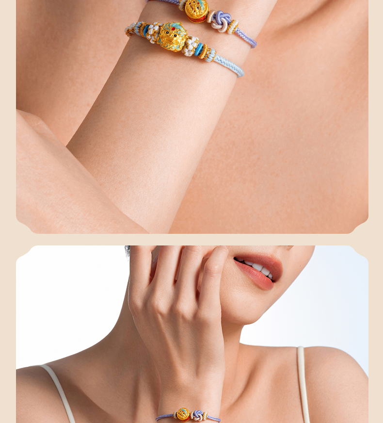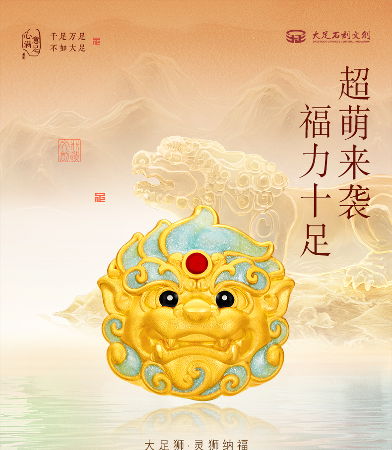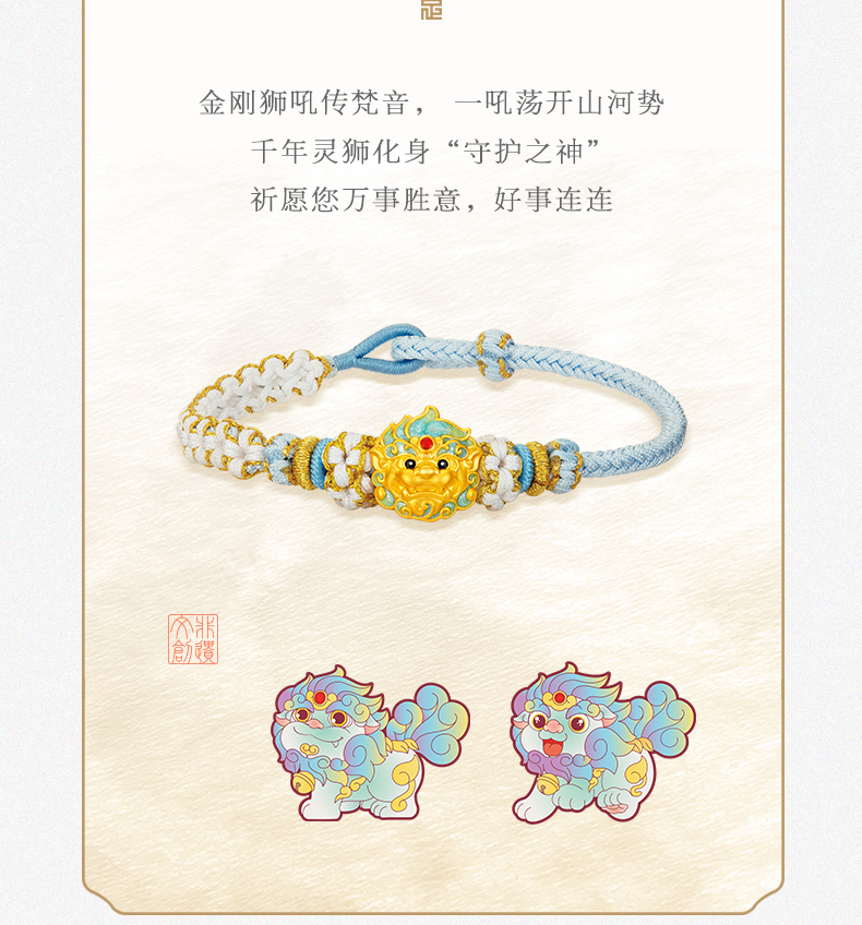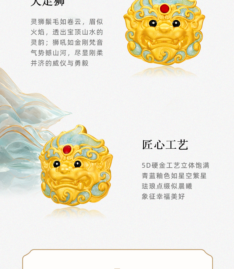 「大足金-大足狮」黄金灵狮纳福转运珠 5D硬金小狮子足金手串【Y】