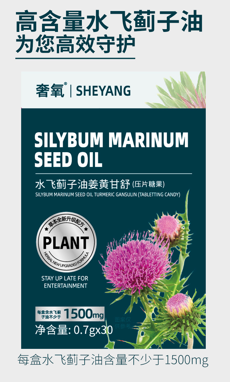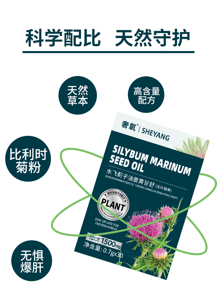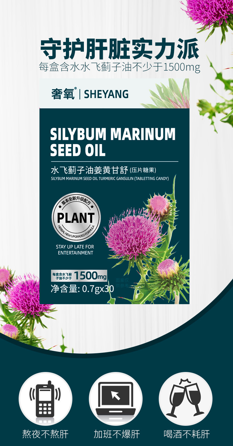 【心肝好伙伴】水飞蓟梓油姜黄甘舒片 呵护旰脏滋养身体 超高含量升级配方 健康草本贴心守护 喝酒抽烟熬夜加班 护甘片养甘片30片/盒