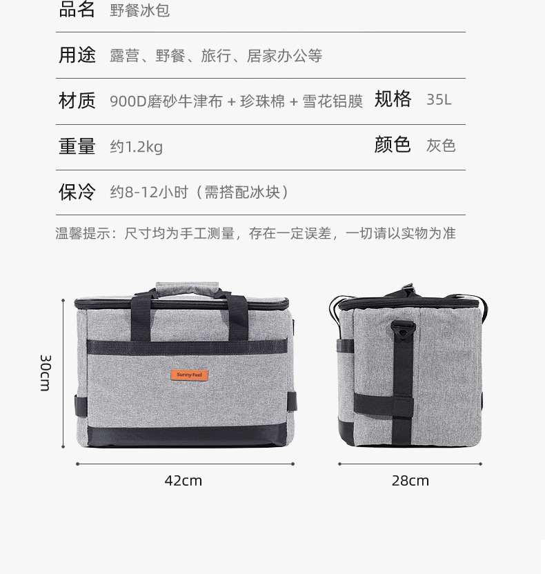 SunnyFeel户外露营保鲜冷藏冰包_便携牛津布野餐多功能午餐保温包