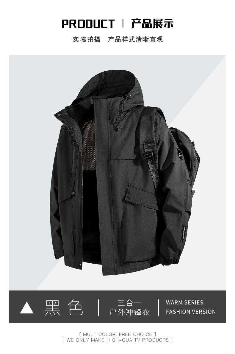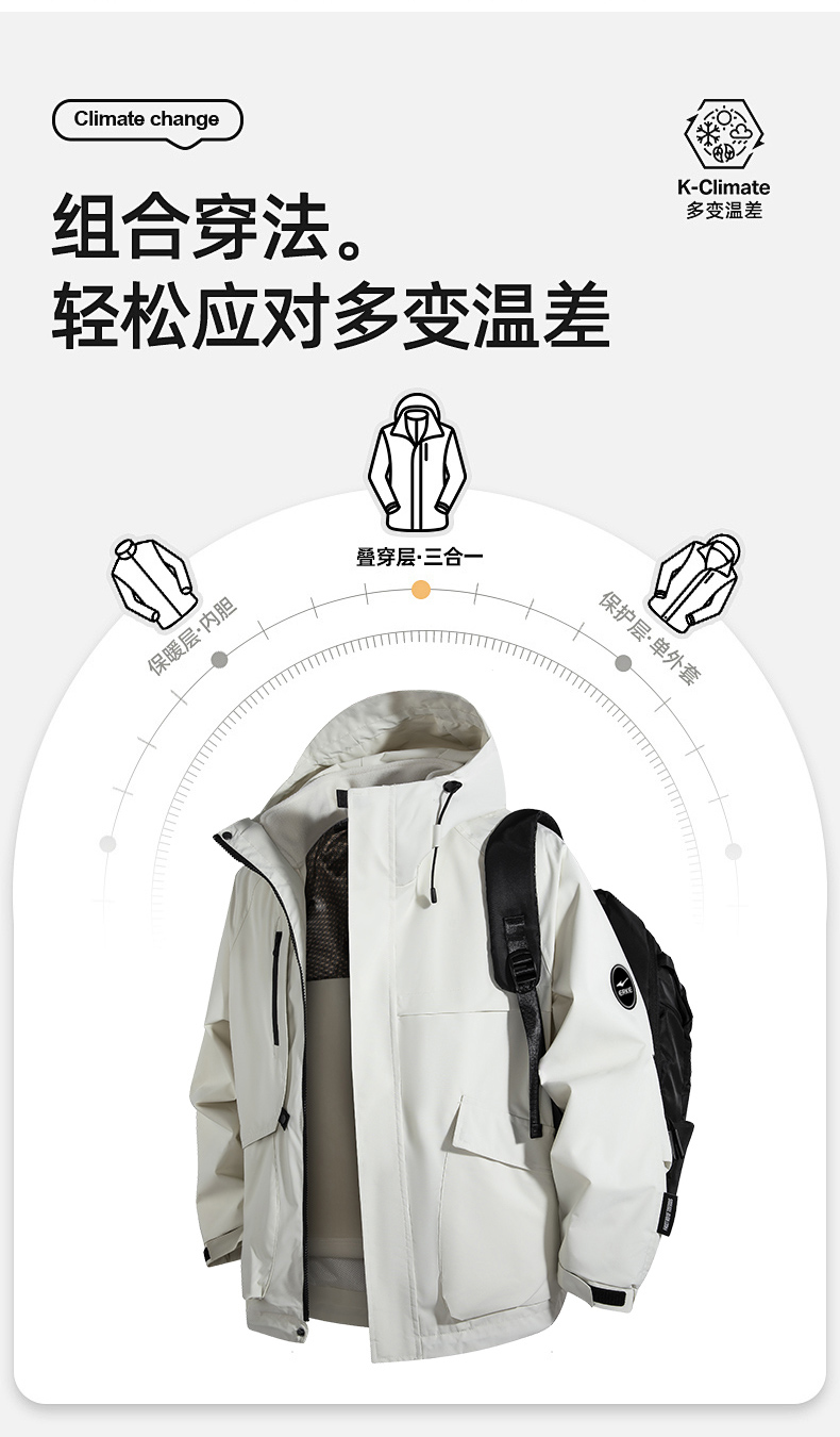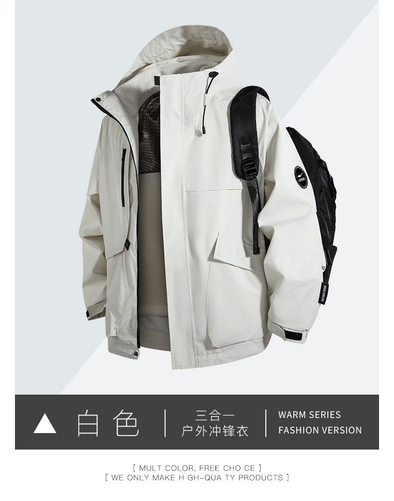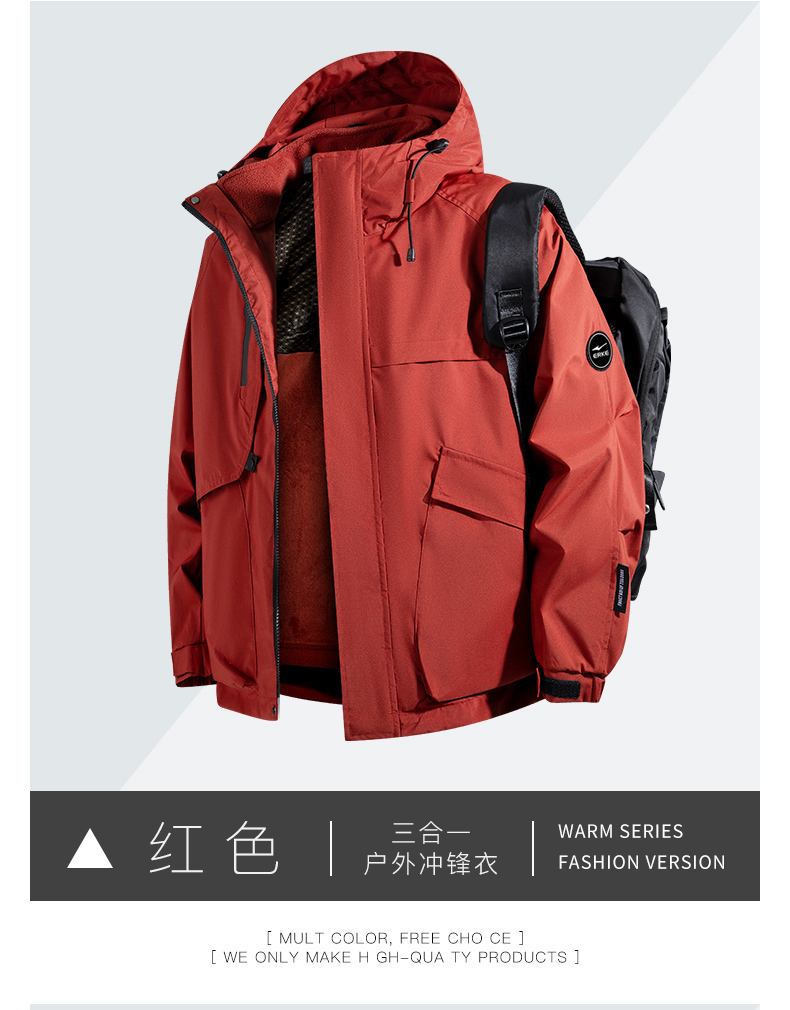 鸿星尔克 三合一连帽冲锋衣情侣款