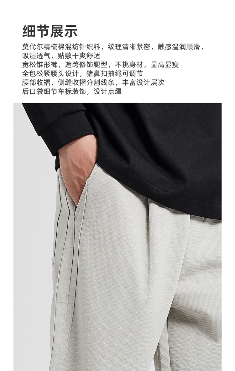 墨麦客重磅莫代尔棉感休闲长裤男士2025秋季新款宽松锥形裤子男潮