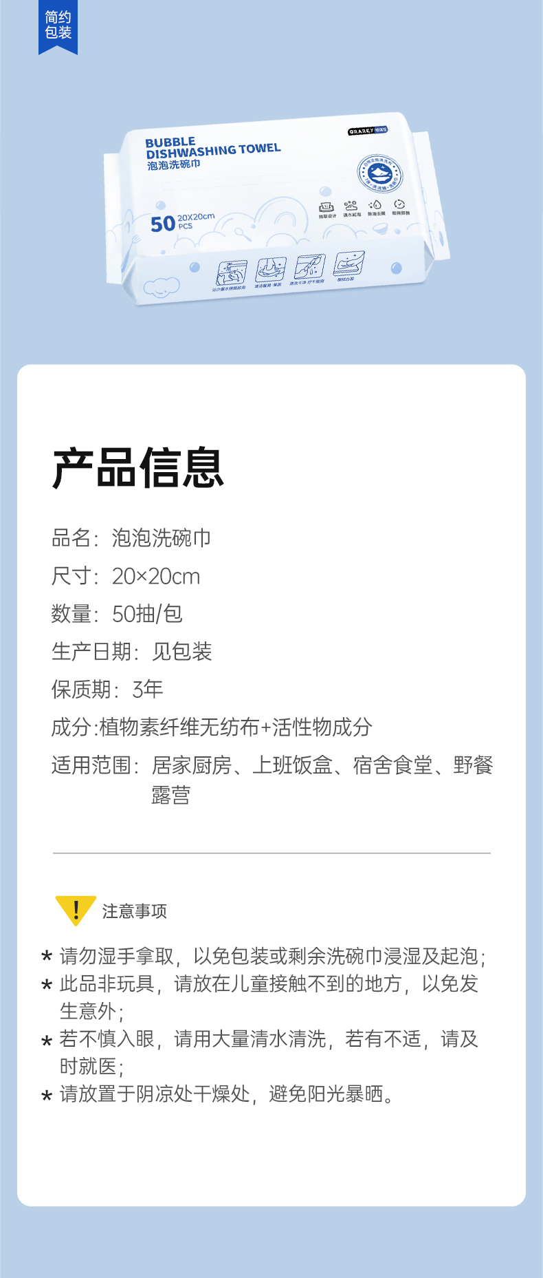 【3包150片】泡泡洗碗巾 50片/包 A类标准洗洁精 1片可清洗2-3人餐具 A-3296Grarey 格瑞亚