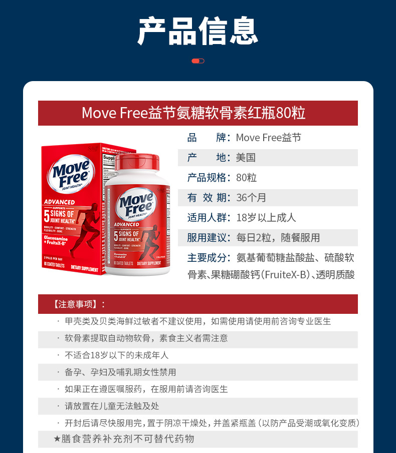 MoveFree 益节 氨糖维骨力红瓶80粒x3瓶