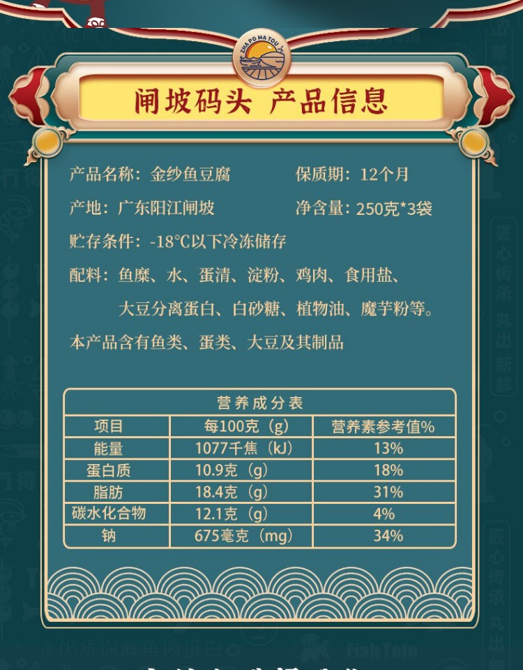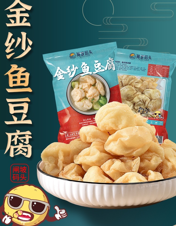 闸坡码头金纱鱼豆腐250g(身披金纱,外酥里嫩,鱼香四溢)可烧汤、火锅、爆炒等