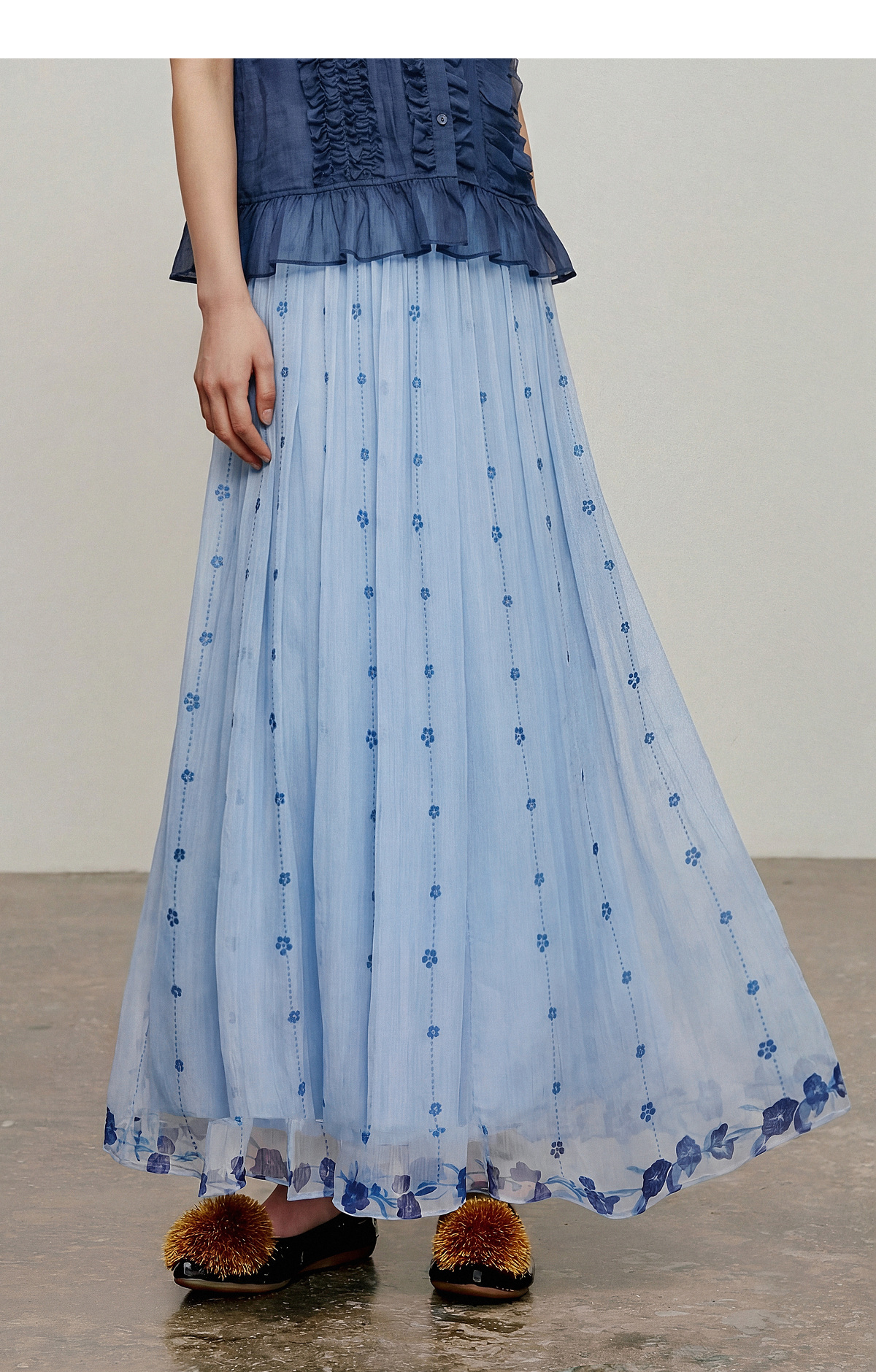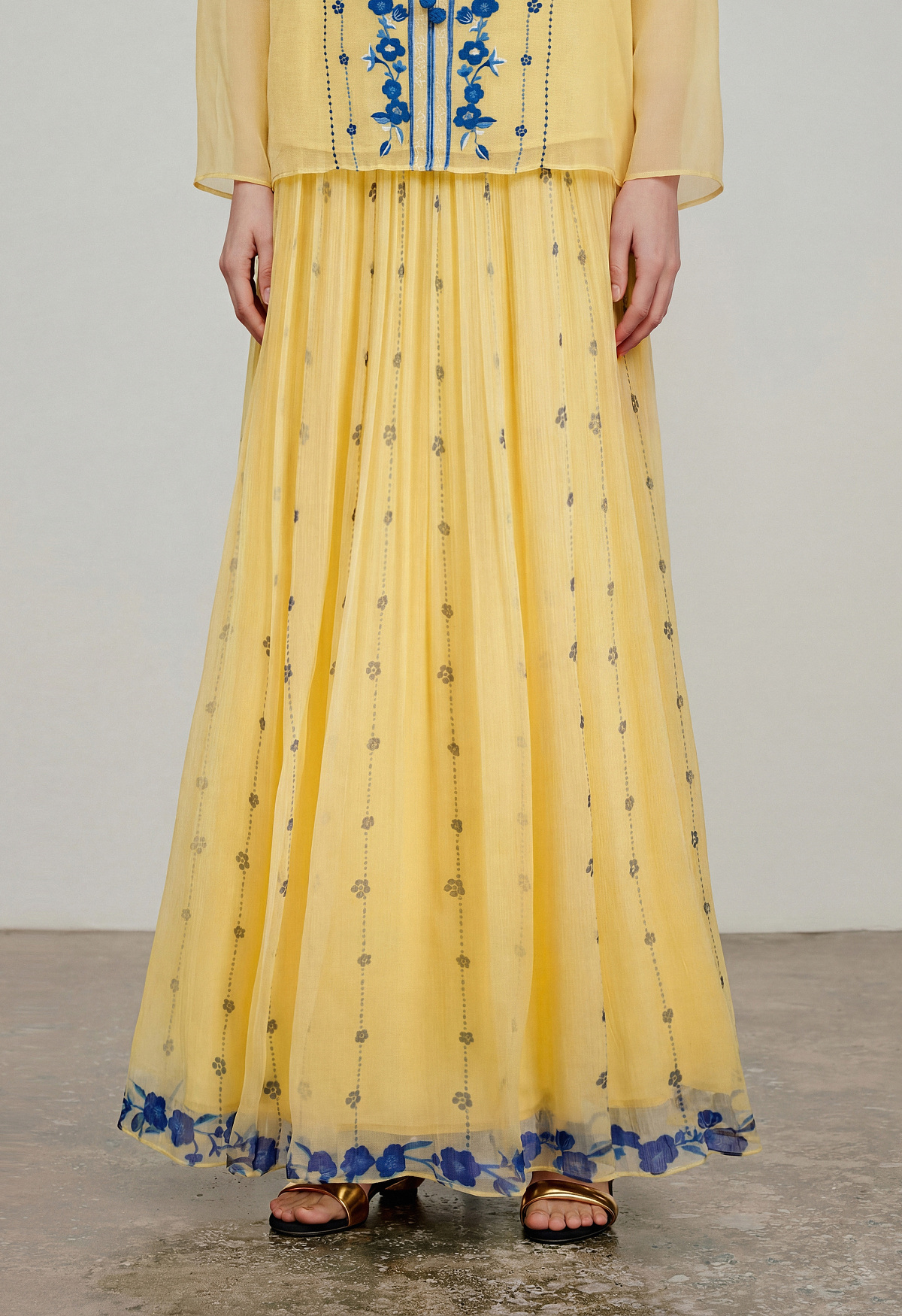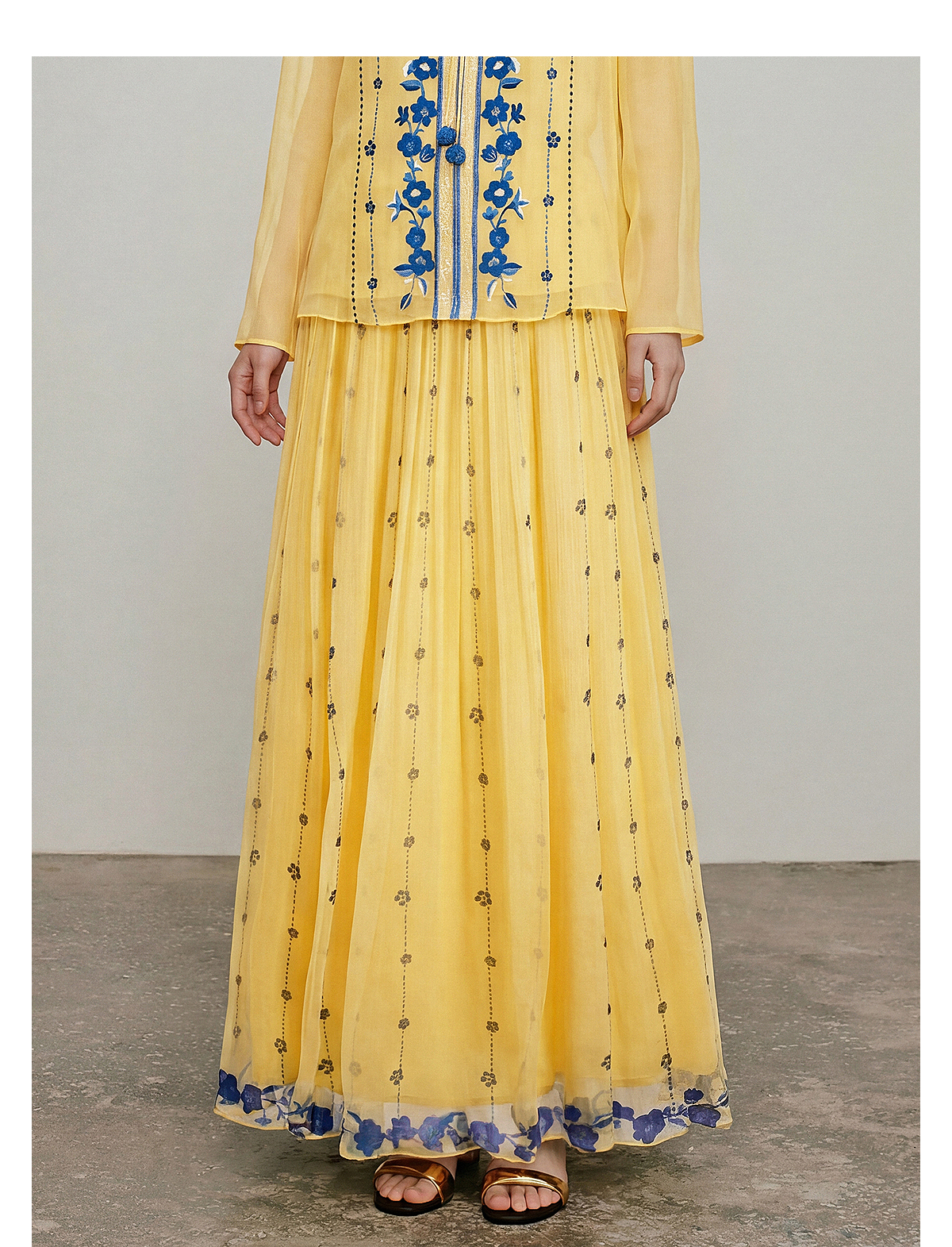 【林栖设计小店】松黄漫庭|桑蚕丝多色宽松垂感百搭夏新款印花半身裙1962020B