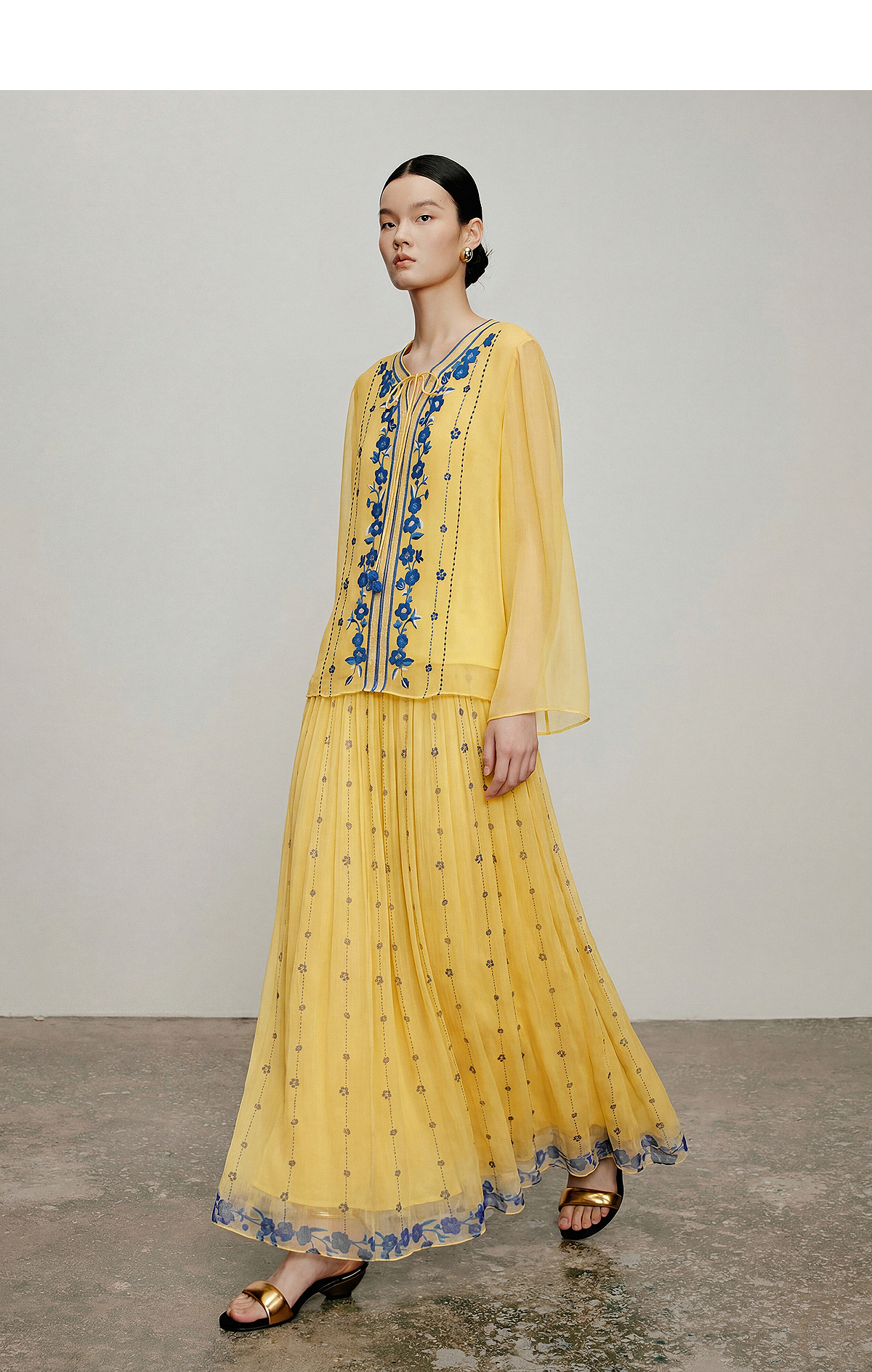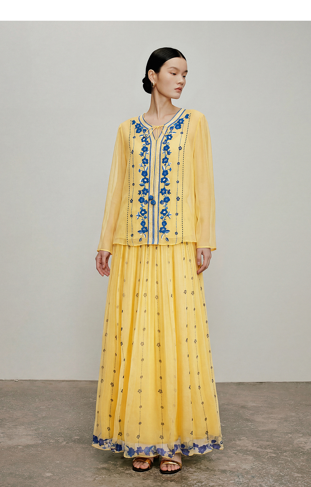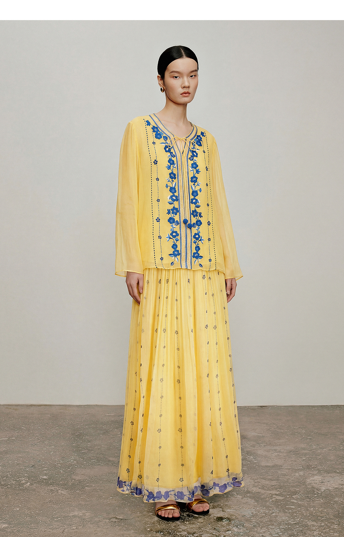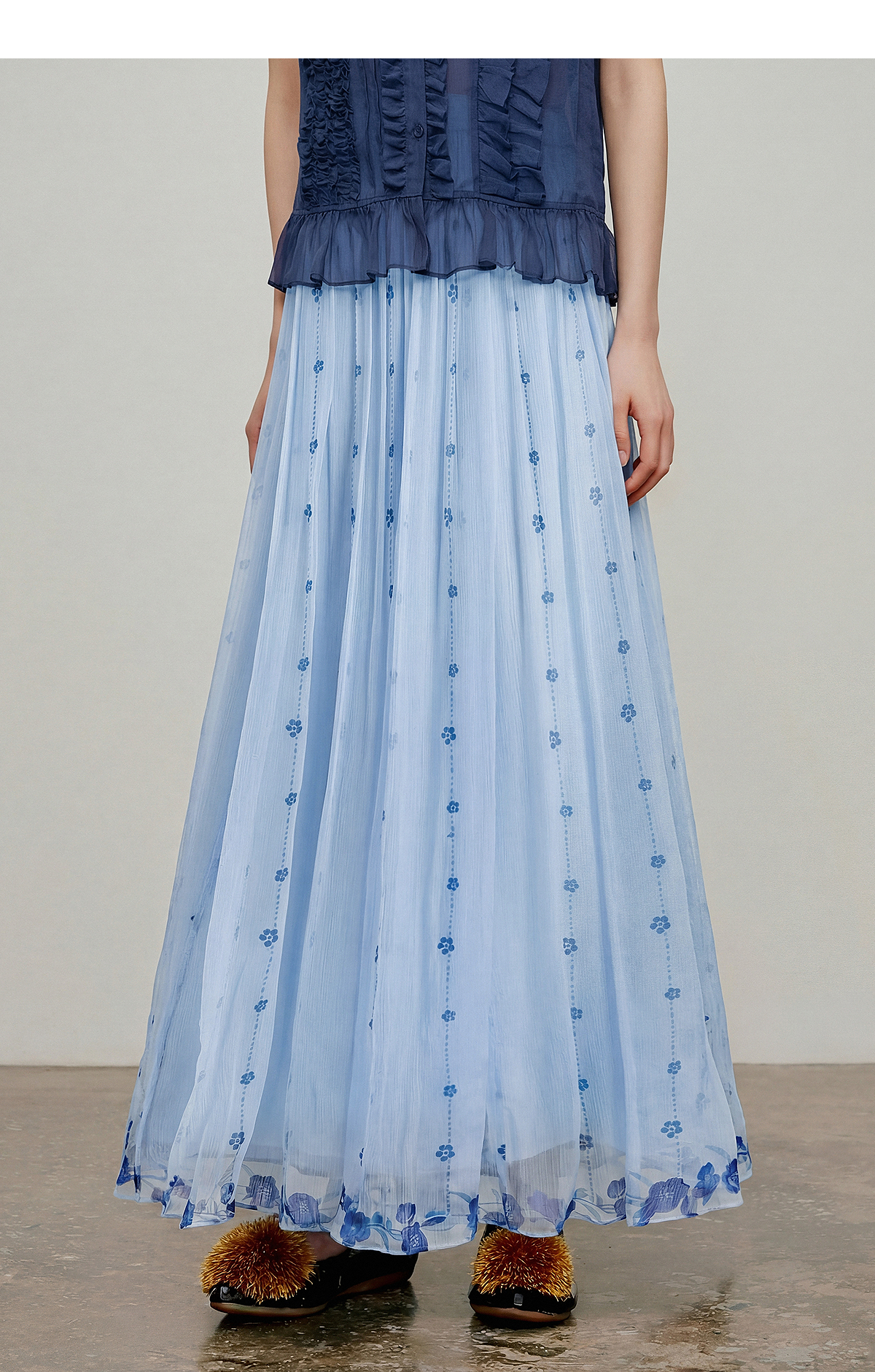 【林栖设计小店】松黄漫庭|桑蚕丝多色宽松垂感百搭夏新款印花半身裙1962020B