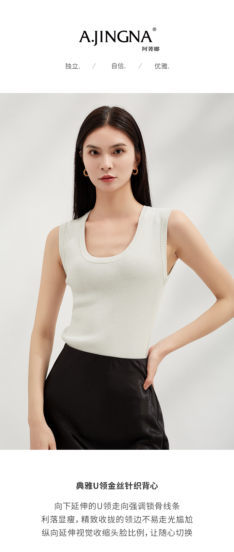 【定染经典】阿菁娜典雅U领金丝针织背心F30C301016