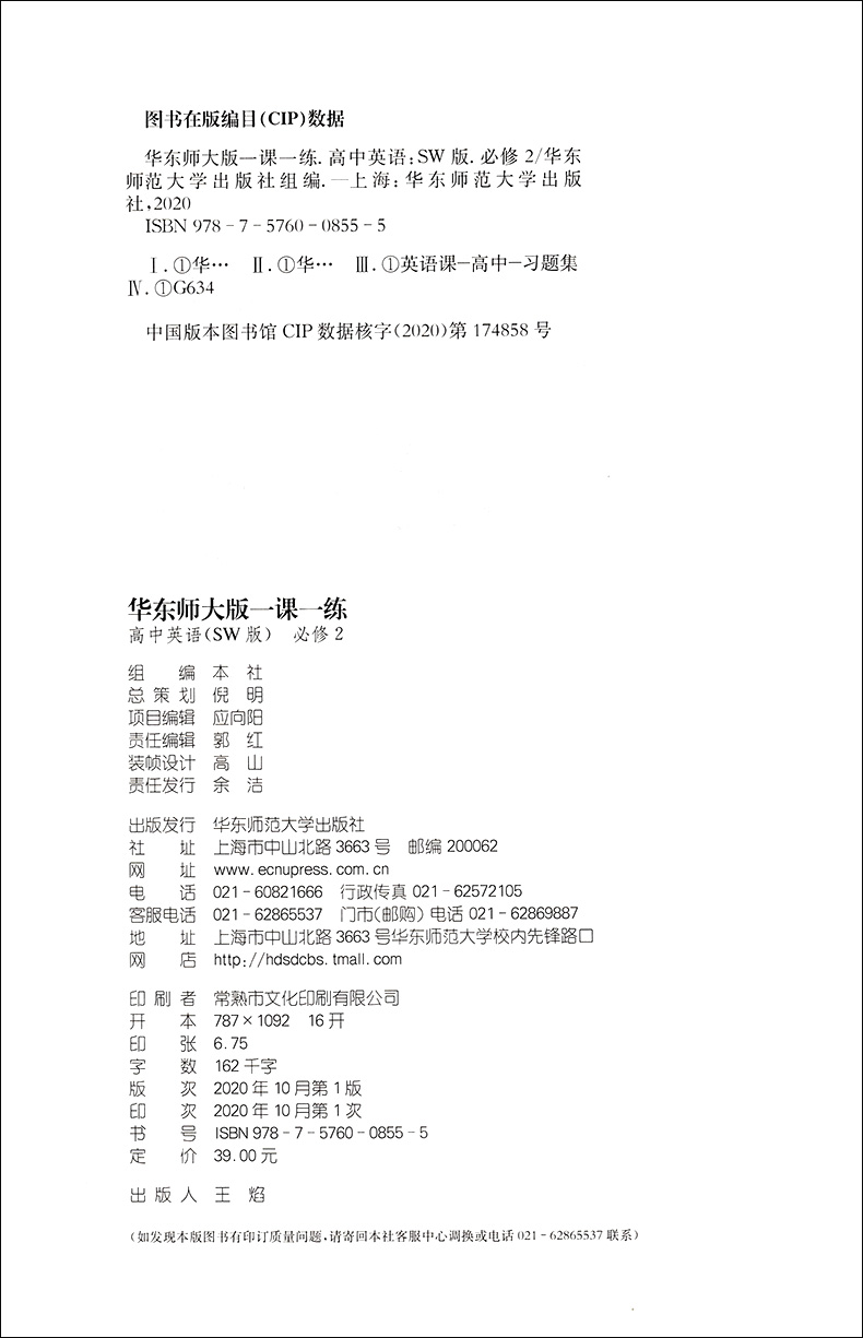 2020新版 华东师大版一课一练 高中英语SW版 必修2 上海高中教材教辅课后同步配套练习 上外版华东师大一课一练华东师范大学出版社