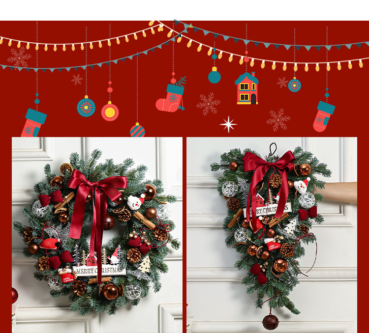 【时尚独特的设计❗️点亮你的圣诞夜】圣诞节装饰品创意圣诞花环门挂藤条橱窗氛围场景布置圣诞树挂件。ja