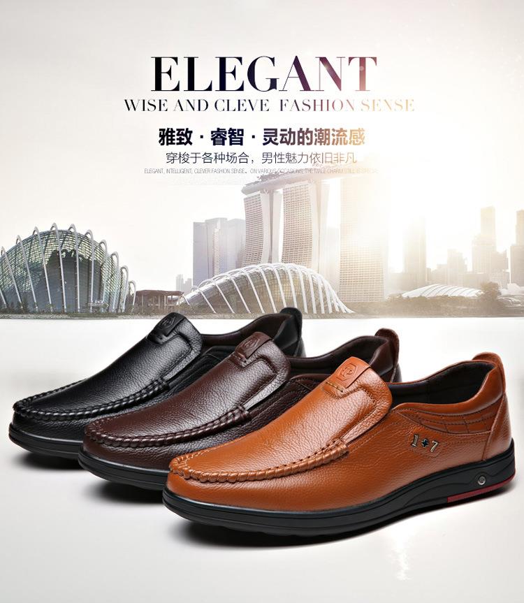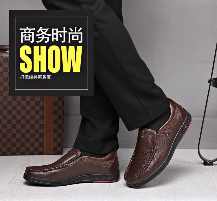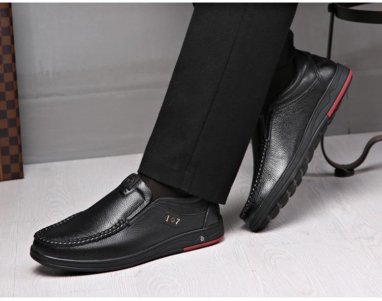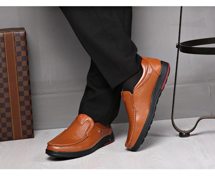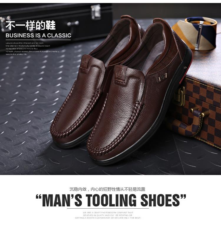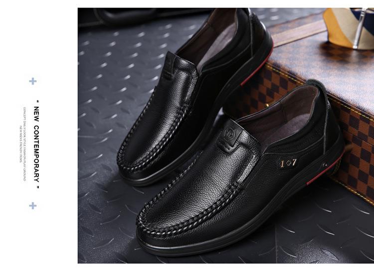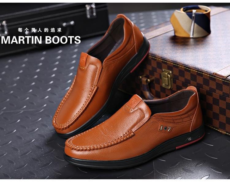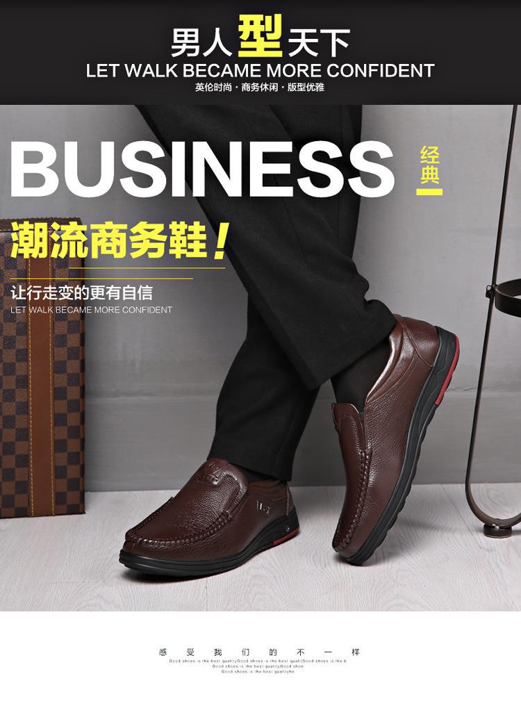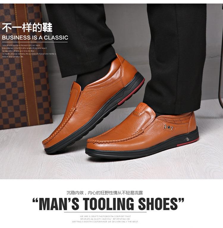 软皮男鞋男士商务正装皮鞋男时尚透气鞋英伦一脚蹬套脚休闲单鞋子