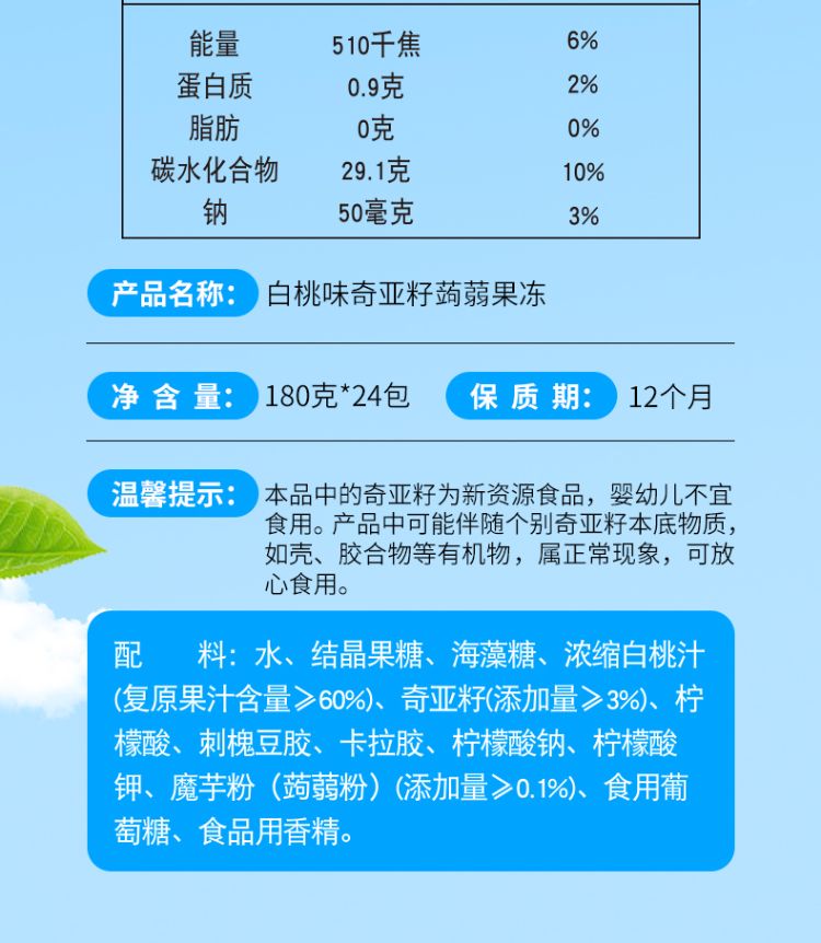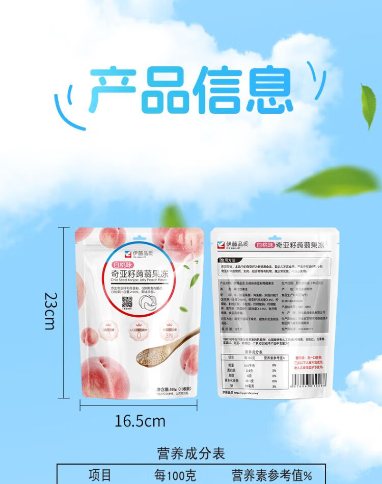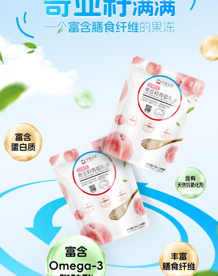 伊藤品质 白桃味奇亚籽蒟蒻果冻(10枚装)180g