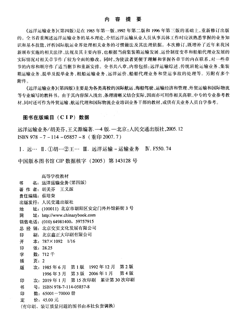 书名:远洋运输业务(第四版)
