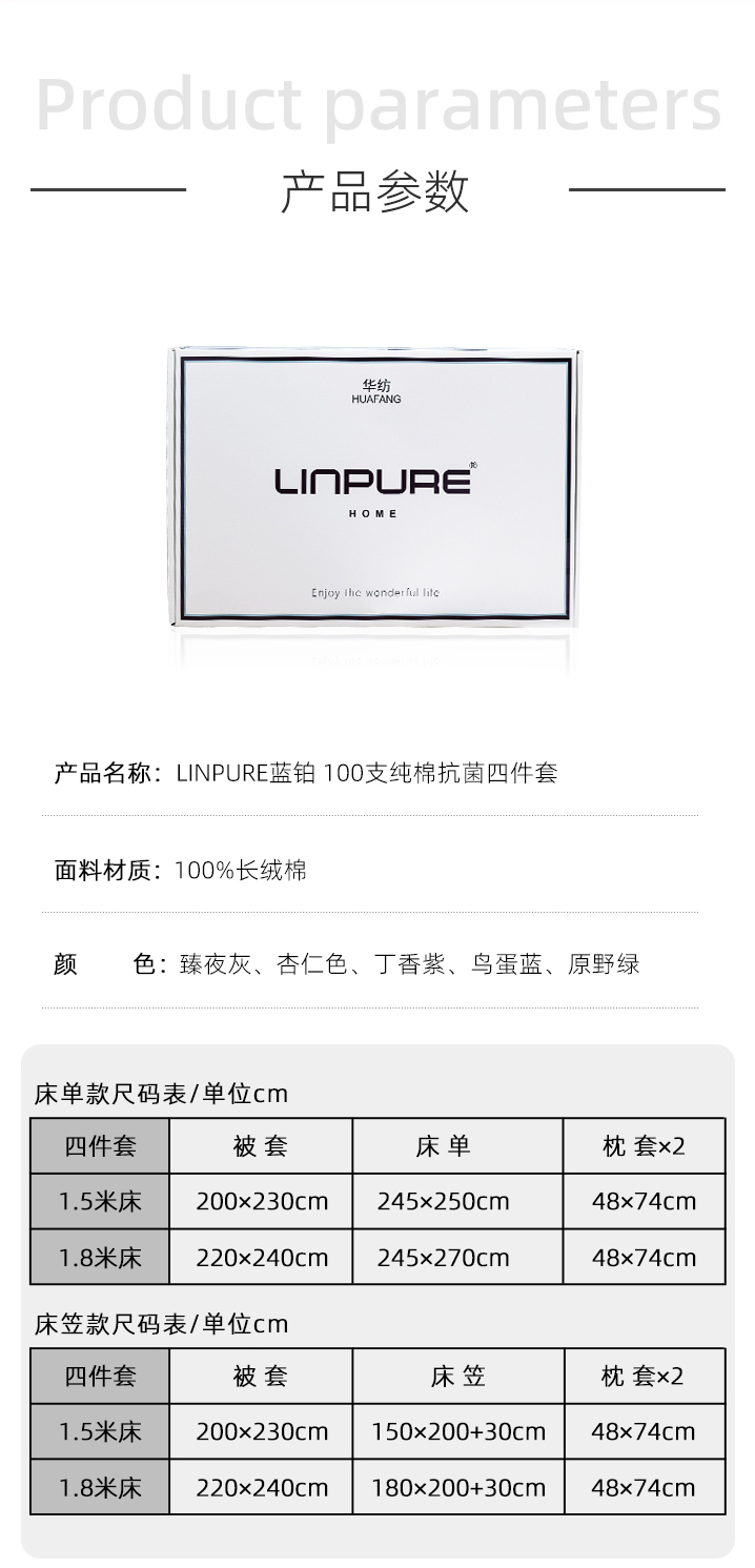 华纺100支纯棉抗菌四件套【山东必买好品】