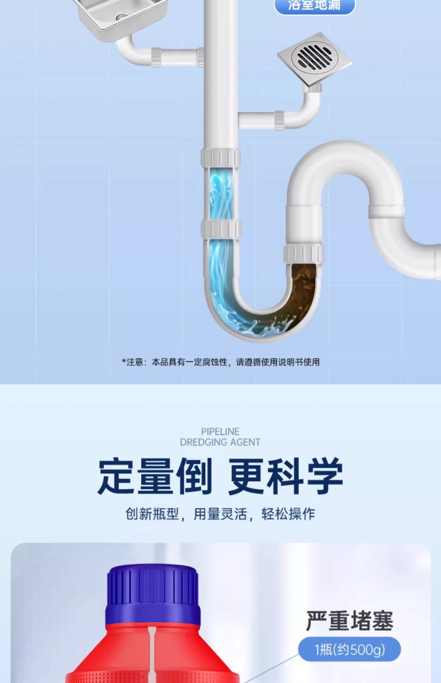 ² 加赠浴室清洁剂1瓶【水卫士管道疏通剂3瓶】HM02-CRMM-WYTX 商品图3