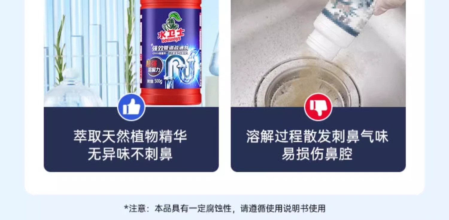 ² 加赠浴室清洁剂1瓶【水卫士管道疏通剂3瓶】HM02-CRMM-WYTX 商品图4