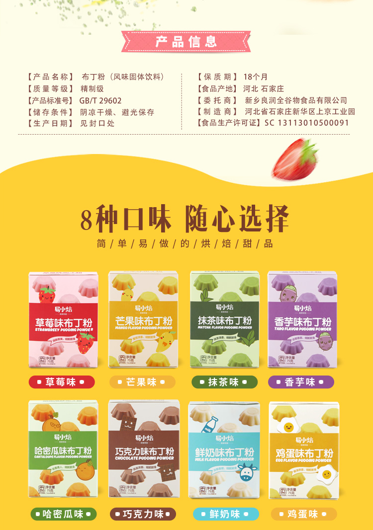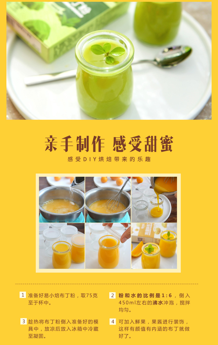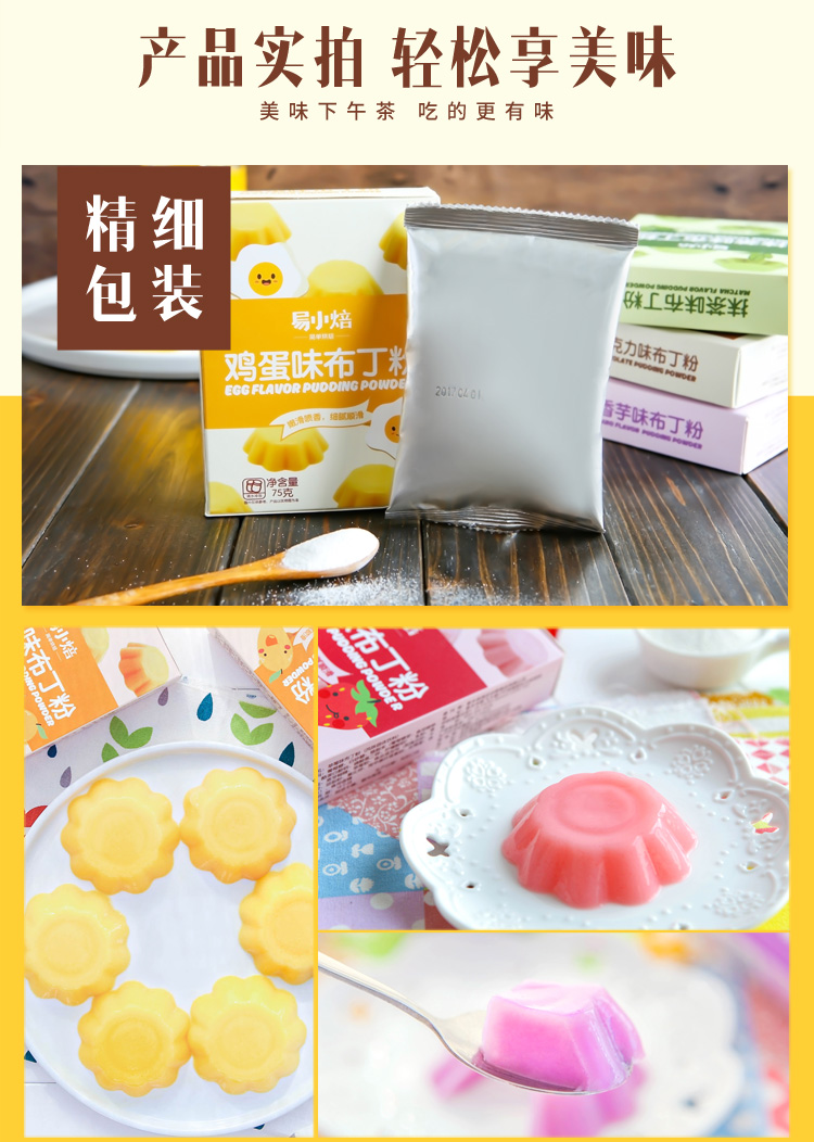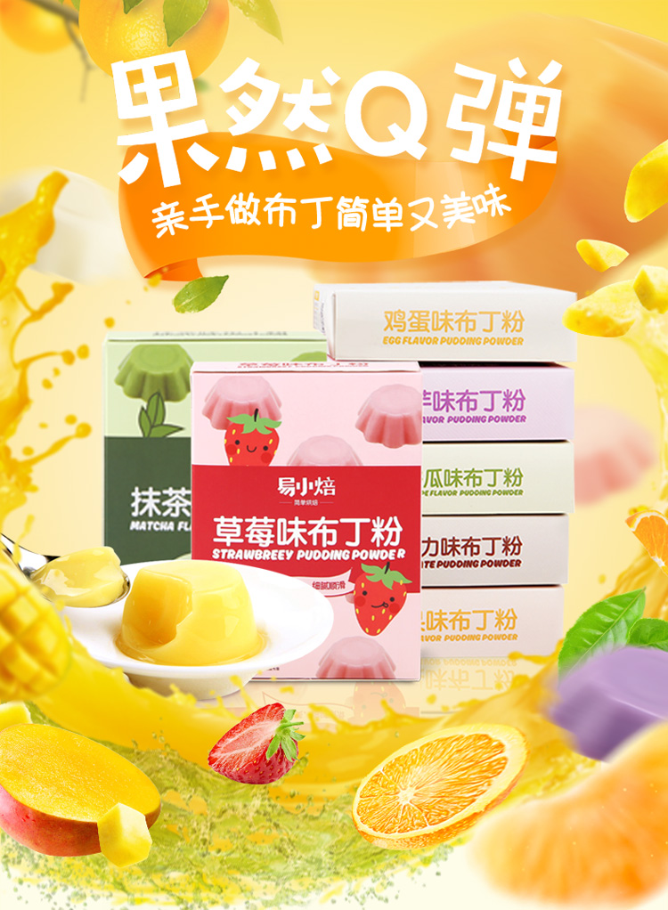 易小焙布丁粉果冻粉自制透明免煮草莓芒果牛奶鸡蛋甜品原料75g