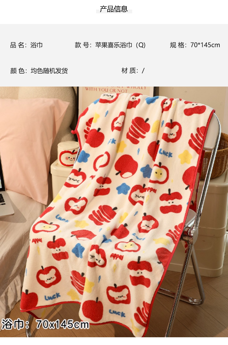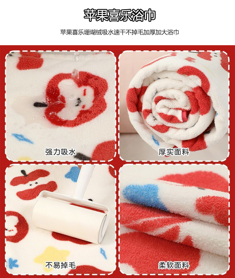 苹果喜乐浴巾珊瑚绒吸水速干不掉毛加厚加大浴巾-纪念日百货门店同款167748512