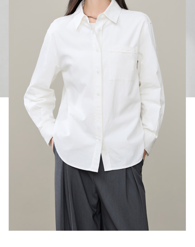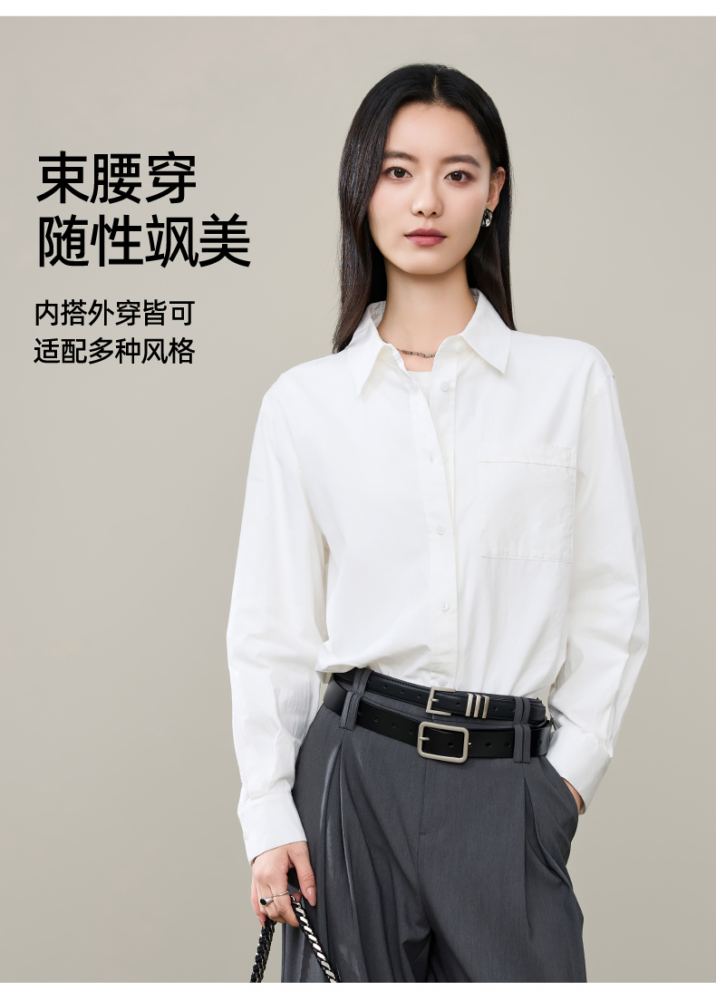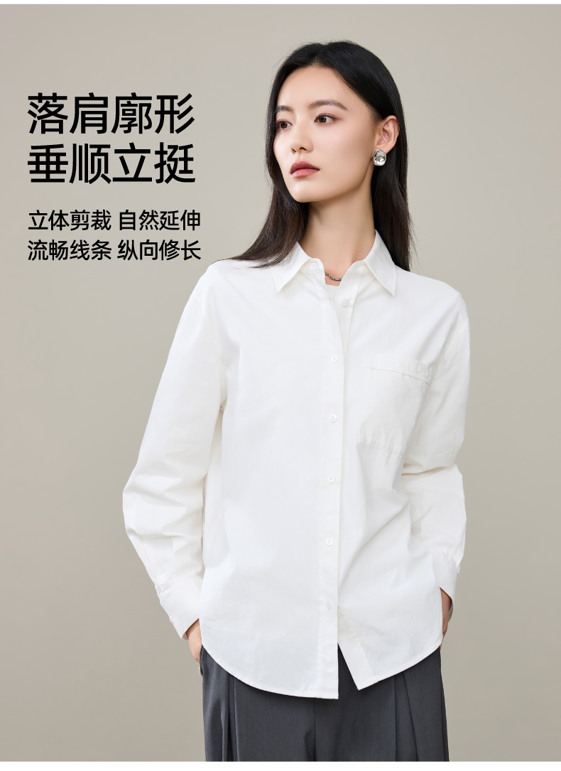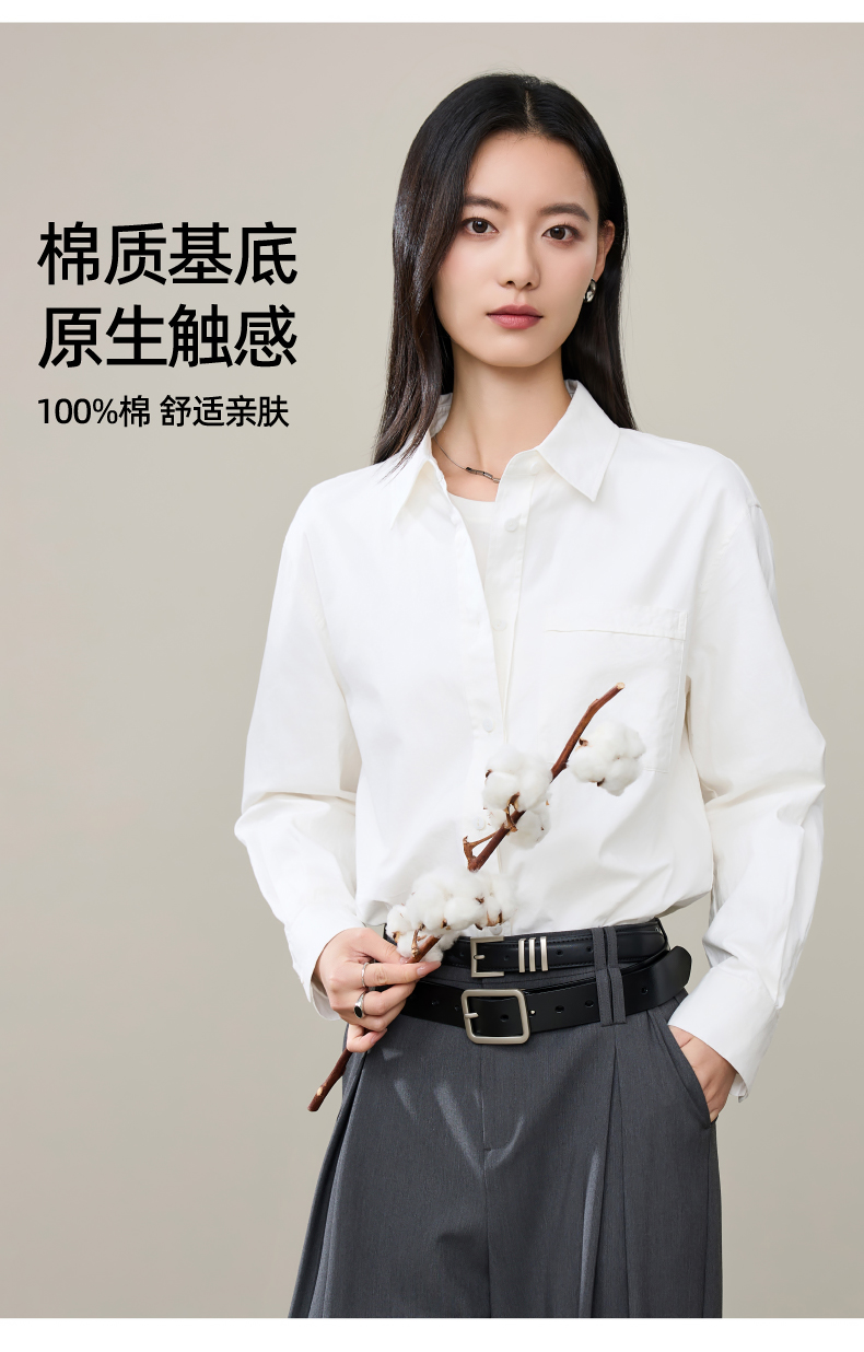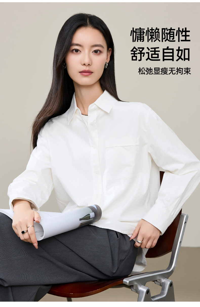 【春新品!全棉白衬衫】逸阳春季新款气质长袖通勤衬衣宽松显瘦休闲上衣5254