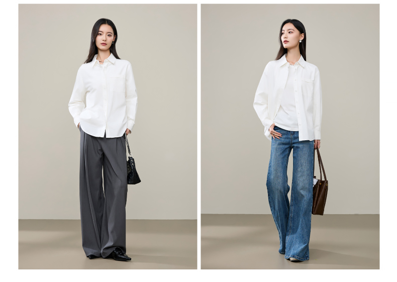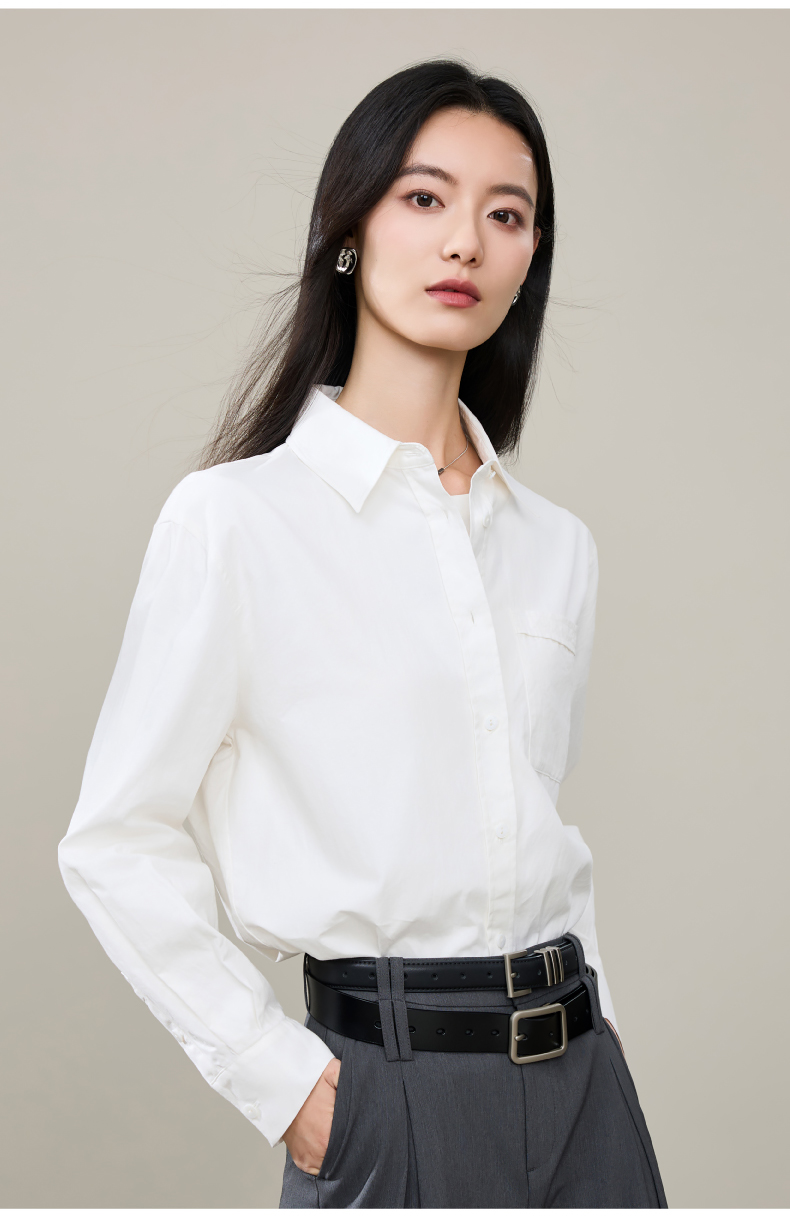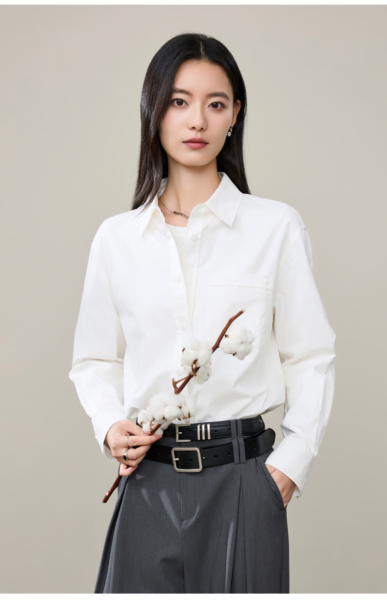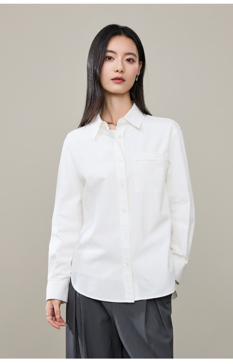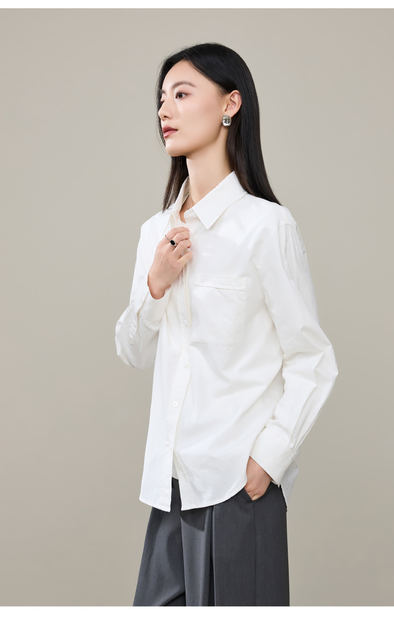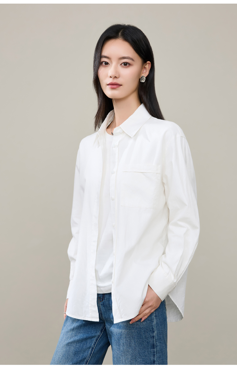 【春新品!全棉白衬衫】逸阳春季新款气质长袖通勤衬衣宽松显瘦休闲上衣5254
