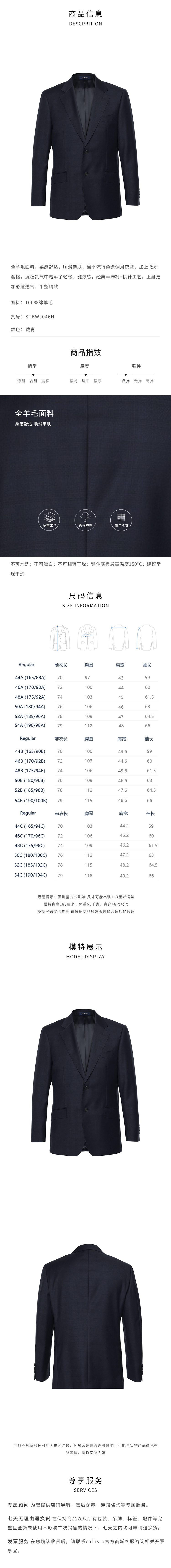 callisto藏青色绵羊毛西服 STBWJ046H