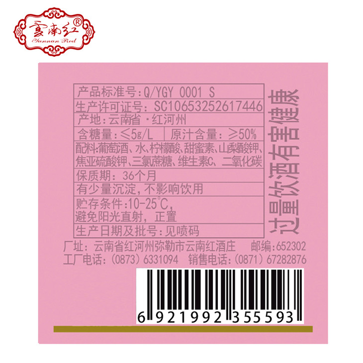 【288元任选6件】云南红铂金级干红葡萄酒12度750ml弥勒酒庄
