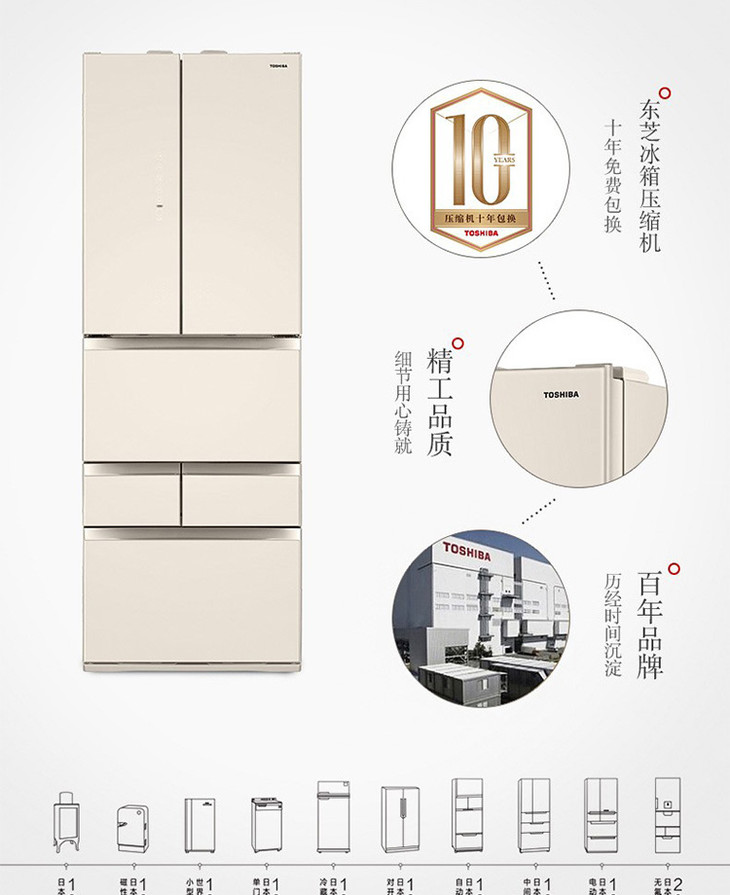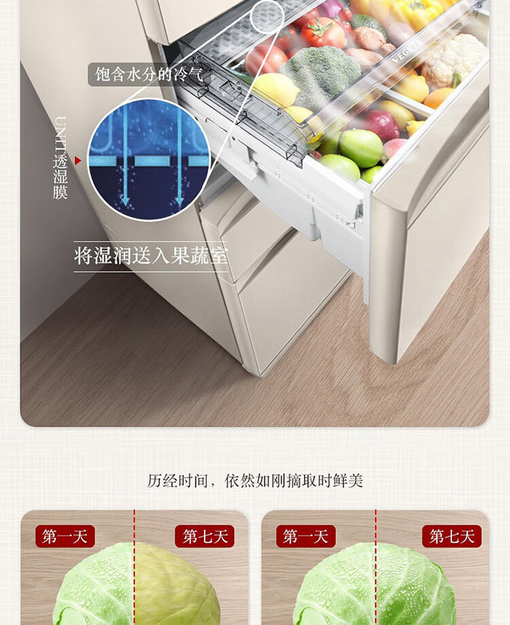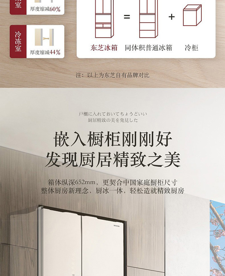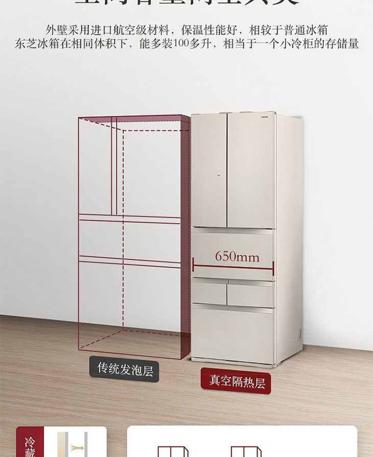 东芝(TOSHIBA)(12976)462L纤薄款六门冰箱 雾化保鲜玻璃面板60分钟快速制冰一级能效GR-RM485WE-PG1A7 绸缎金